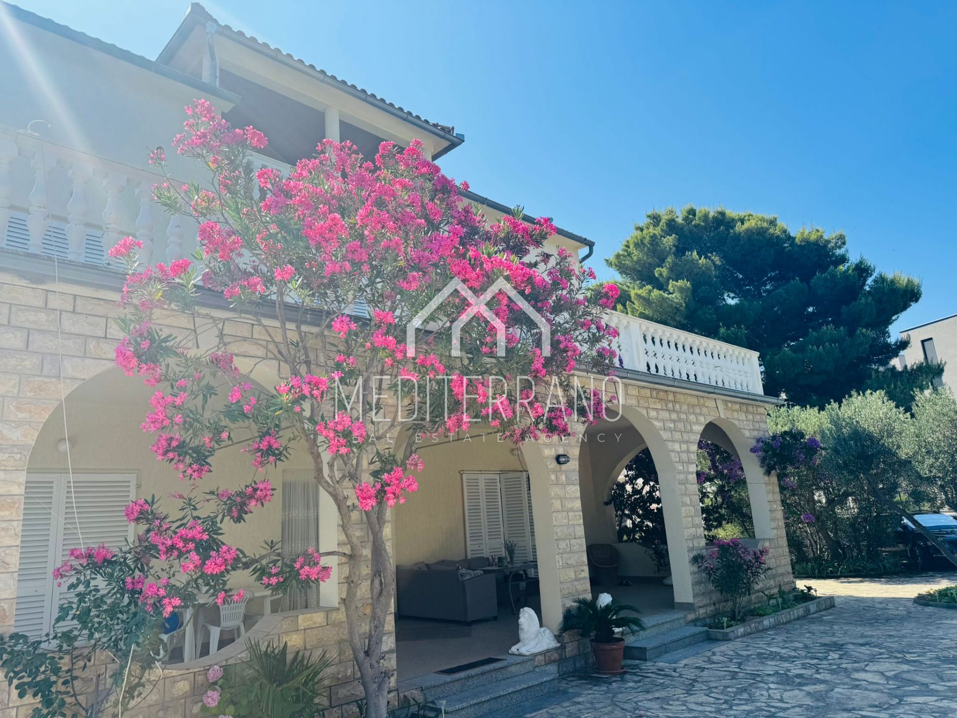 Opis: Prekrasna kuća na izuzetnoj lokaciji u Žaboriću, smještena u drugom redu od mora, pruža rijetku priliku na tržištu. Nekretnina se prostire na zemljištu od 1262 m² - od čega je 217 m2 stambeno - s prostranim dvorištem ispred kuće te dva pomoćna objekta (garaža i spremište s roštiljem) iza kuće. Kuća je raspoređena na tri etaže – prizemlje, prvi i drugi kat – s više stambenih jedinica i velikim terasama koje nude pogled na more i prirodni hlad.