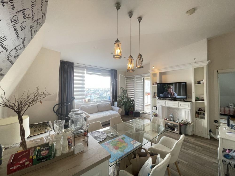 Stan se sastoji od: ulaznog hodnika, prostranog dnevno-trpezarijskog dela sa kuhinjom, tri spavaće sobe, dva kupatila i terase.