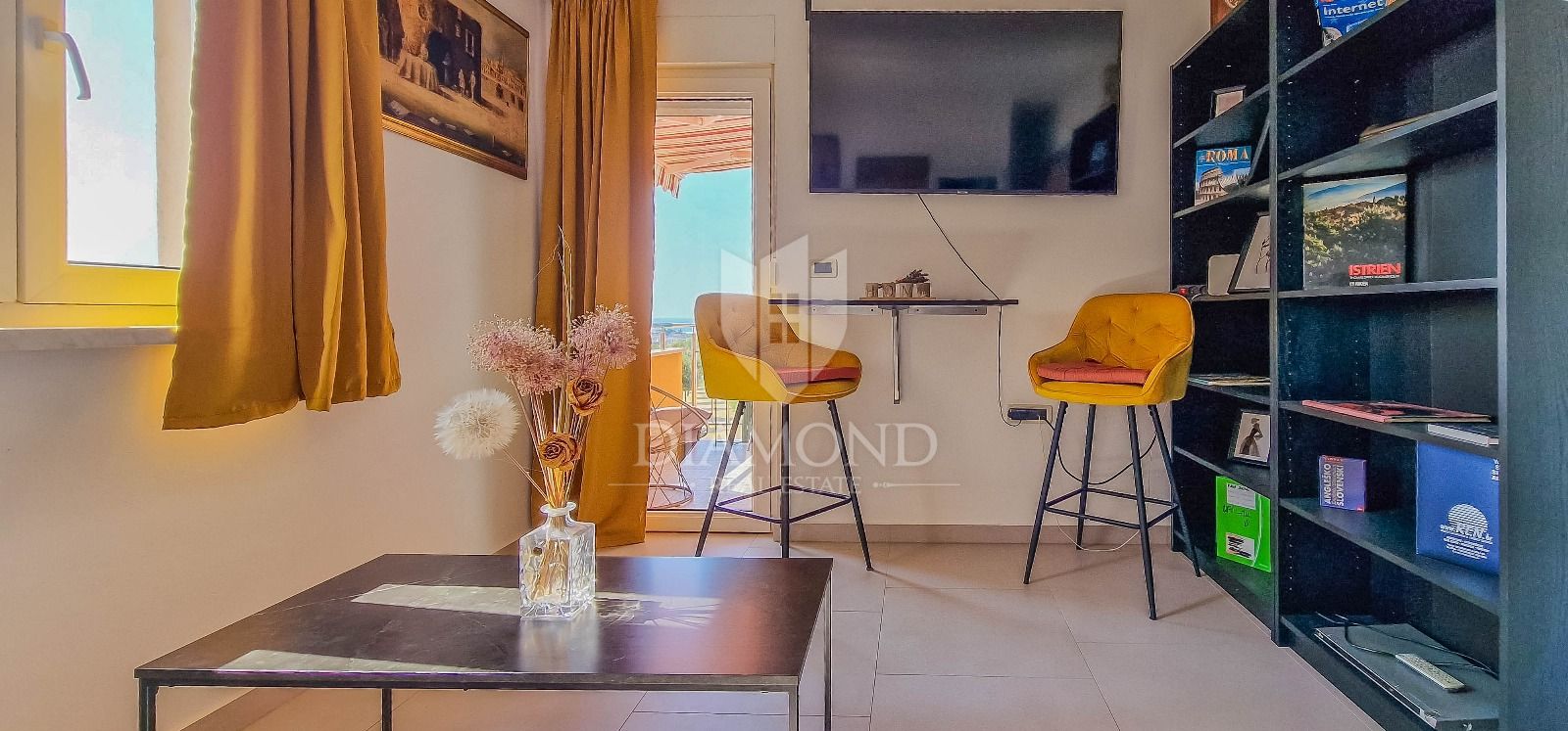 Opis: Istra, Novigrad, potpuno renoviran i moderno opremljen stan površine 40,70 m², smješten u mirnom i atraktivnom dijelu, svega 1,5 km udaljen od centra grada, uređenih plaža, trgovina i restorana. Stan se nalazi na prvom katu i nudi predivan, otvoren pogled na more, koji se pruža iz dnevnog boravka i lođe.