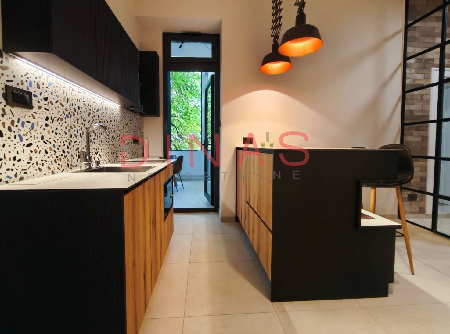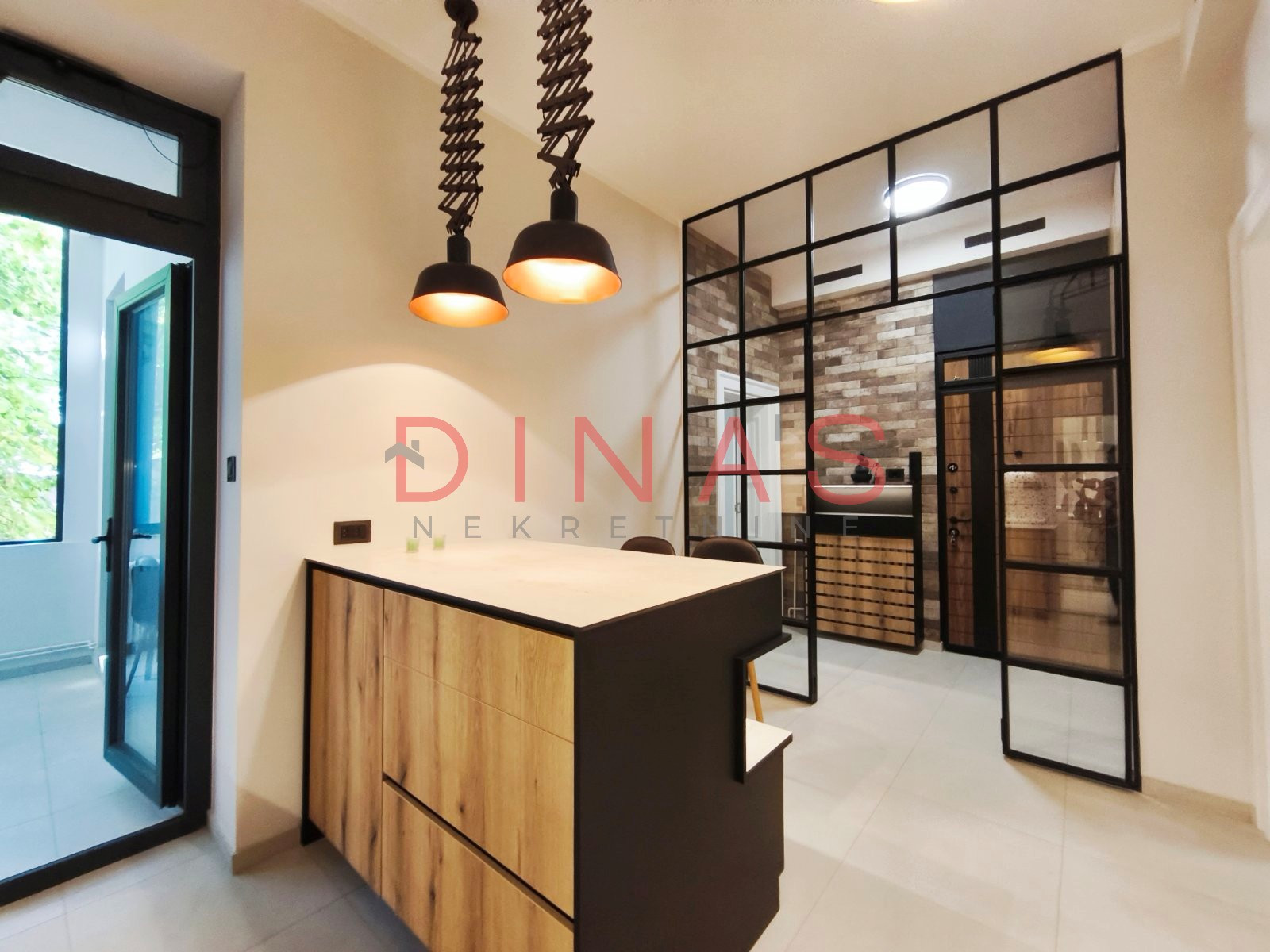 Opis: Prodaje se kompletno i moderno renoviran salonski stan u starom delu grada, na jednoj od najpoželjnih lokacija. Stan ima neobičan raspored, u centralnom delu se nalazi potpuno opremljena kuhinja sa šankom iz koje se može ući u sve prostorije stana, koji se sastoji od tri odvojene velike sobe, veoma lepe trpezarije i kupatila sa tuš kabinom. Stan ima visoke plafone, dvostrano je orijentisan. Uknižen je na 88m² ali zbog uključene terase površina stana je oko 100m². Pogodan za komforan život i kao poslovni prostor. Odmah useljiv, bez tereta i zabeležbi. U navedenoj oglasnoj ceni uključena je posrednička naknada od 3%.