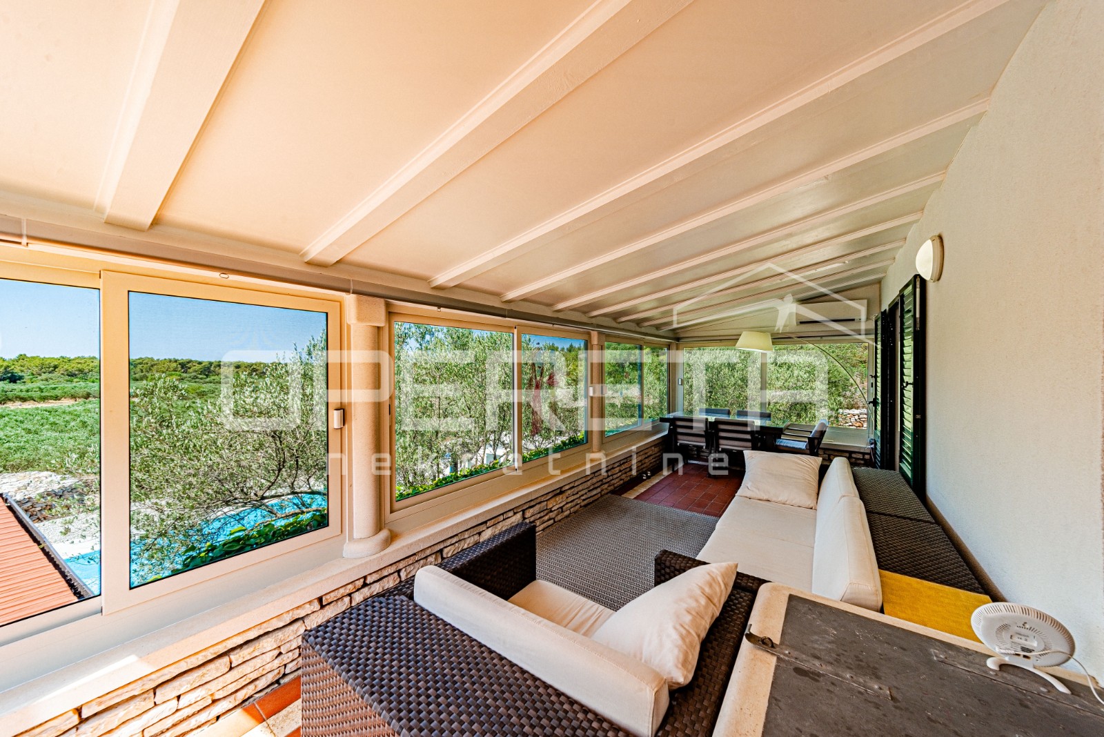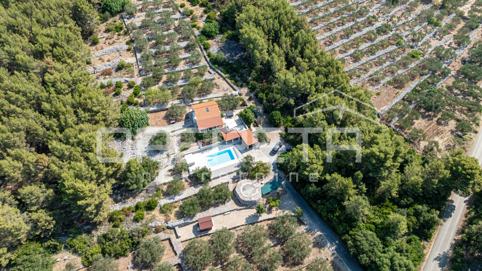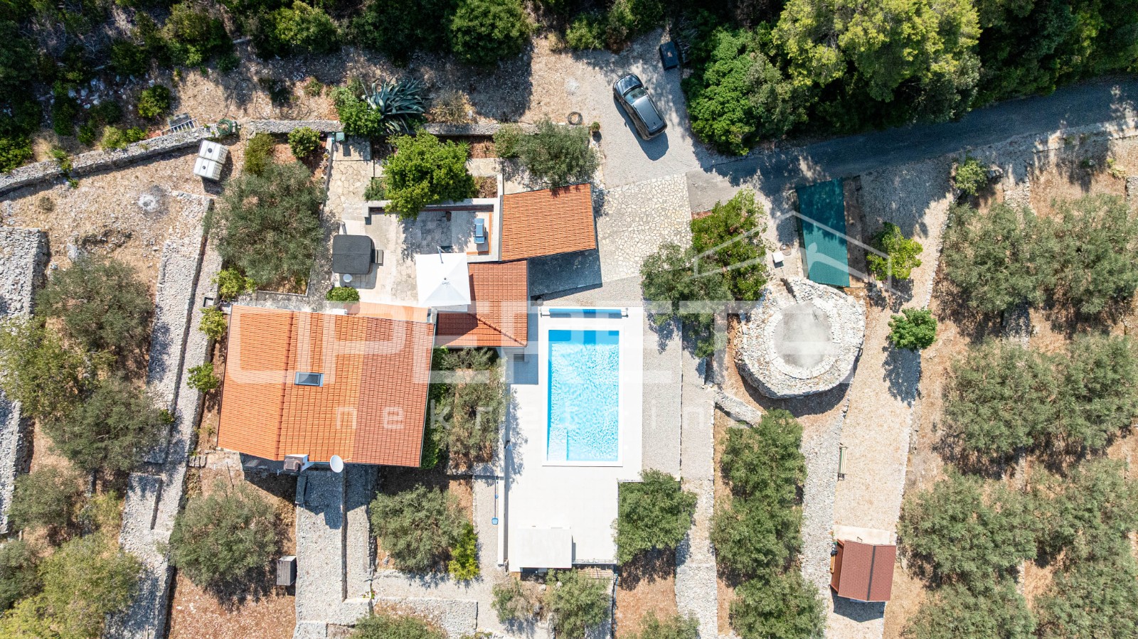 Opis: Elegantna Vila s bazenom i jacuzzijem – Potirna, KorčulaNa zapadnoj strani otoka Korčule, u mirnom i zaštićenom okruženju Potirne, smještena je ova ekskluzivna kuća koja spaja vrhunsku udobnost, mediteranski šarm i potpunu privatnost. Okružena njegovanom prirodom, maslinikom i autentičnom dalmatinskom vegetacijom, a udaljena svega desetak minuta vožnje od Vele Luke i približno tisuću metara od mora, predstavlja savršeno mjesto za život ili opuštanje na visokoj razini.Na parceli od 2914 m², s kamenim suhozidima i pažljivo uređenom okućnicom, smješten je objekt neto stambene površine oko 100 m², raspoređen na dvije etaže. U prizemlju se nalazi moderna kuhinja s blagovaonicom, kupaonica i glavna spavaća soba, dok dnevni boravak besprijekorno komunicira sa zatvorenom terasom zahvaljujući velikoj, visokokvalitetnoj staklenoj stijeni koja omogućuje obilje prirodnog svjetla i neometan pogled na okolnu prirodu. Na katu je smještena dječja soba koja nudi idealan prostor za djecu i obiteljski boravak.Iz zatvorene terase izlazi se na prostranu vanjsku terasu opremljenu jacuzzijem i vrhunskim roštiljem, idealnu za opuštanje i druženje....