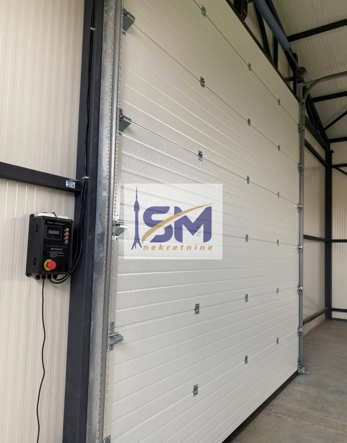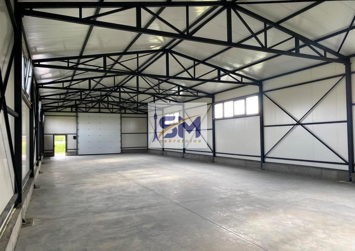 Opis: Nova hala 300m2, 30x10 korisna visina 4m, Segmentna vrata 4x4m, dvoje malih vrata, zidovi su sendvic paneli 8, krov 5. Pod je fero beton. Deo za parking 200m2, u izgradnji je toalet i kancelarija koja moze biti uradjena po potrebi zakupca.