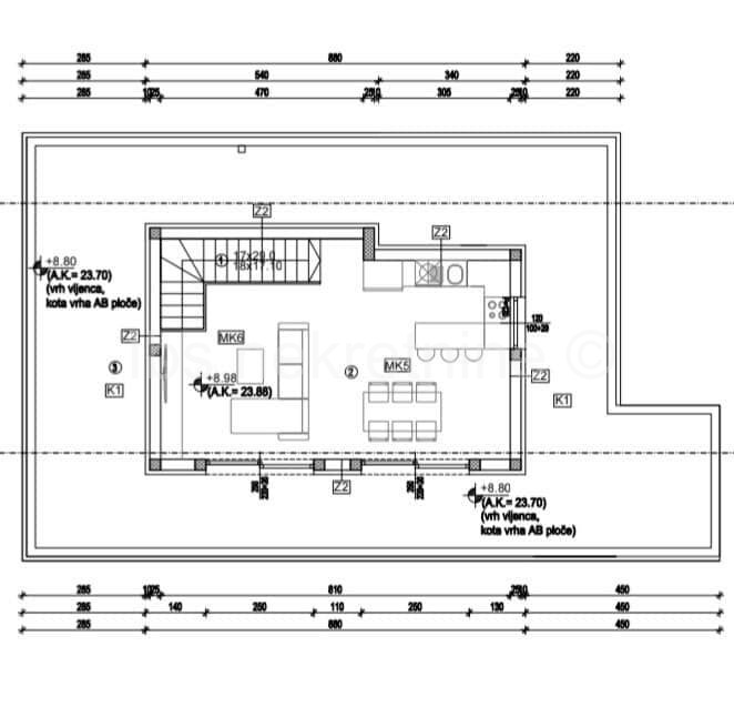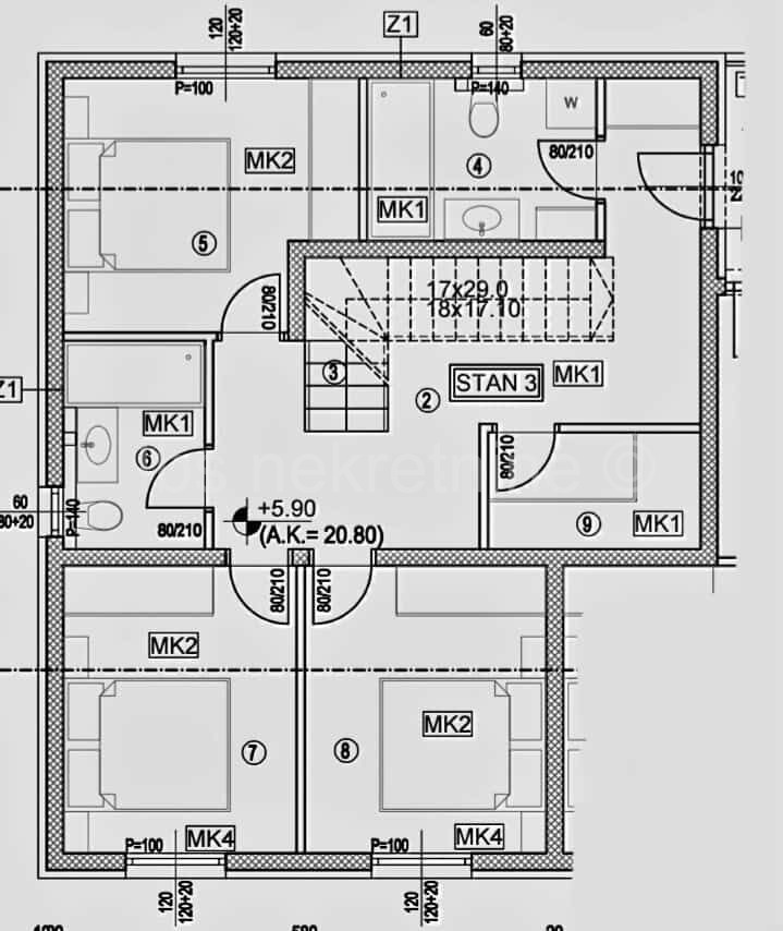 Prodaje se prostrani trosobni dvoetažni stan u novoj kvalitetnoj zgradi, čija gradnja počinje jesen 2025. godine. Stan se nalazi na drugom i trećem katu manje zgrade na jako atraktivnoj lokaciji u Kaštel Starom!
