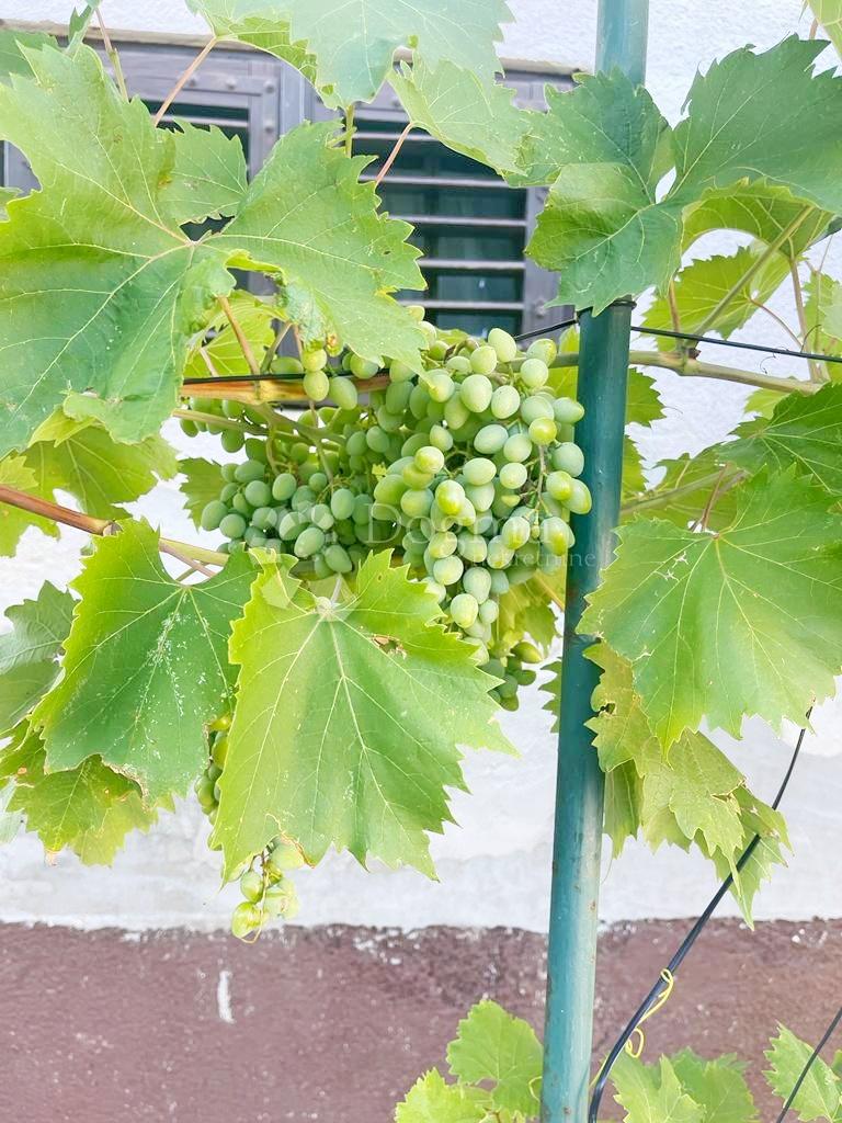 Okućnica je ograđena, ima dva ulaza, uređena je i zasađena mediteranskim biljem, vinovom lozom i voćkama.