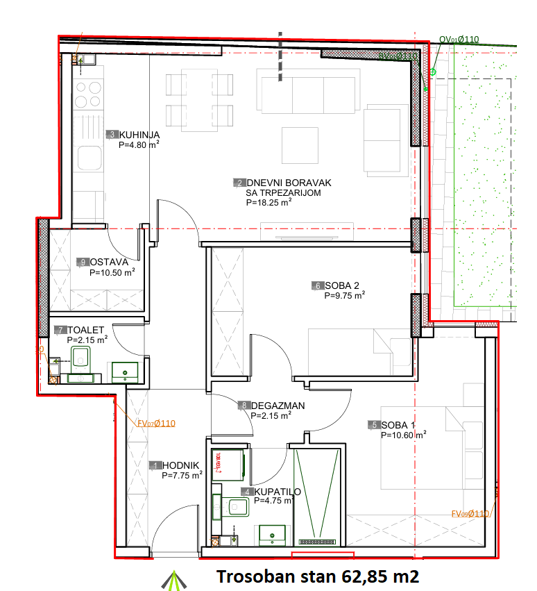 Prodaje se trosoban stan u izgradnji ukupne površine 62,85 m2 u prizemlju stambeno poslovnog objekta “SAND CITY” koji će da posjeduje lift.