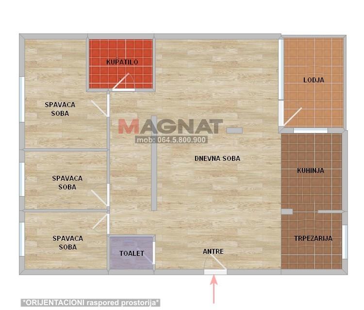 Opis: MAGNAT 064.5.800.900 - u ulici Vinogradski venac, u kraju poznatom kao Cerak vinogradi, na Opštini Čukarica, MAGNAT prodaje 3.5 soban stan od 96 m2 (od kojih 83 grejne površine), na III spratu (od ukupno 3 spr.) u zgradi iz 1986 god.izgradnje, bez lifta.