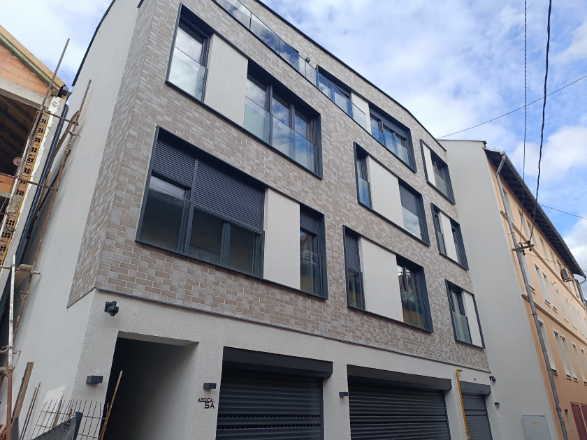 Fasadni sistem je sastavljen od : termofasade debljine 10 cm – tip Baumit sa pro-mineralnom glet masom i organskom završnom žbukom te aluminijskim,vanjskim klupicama u boji stolarije.