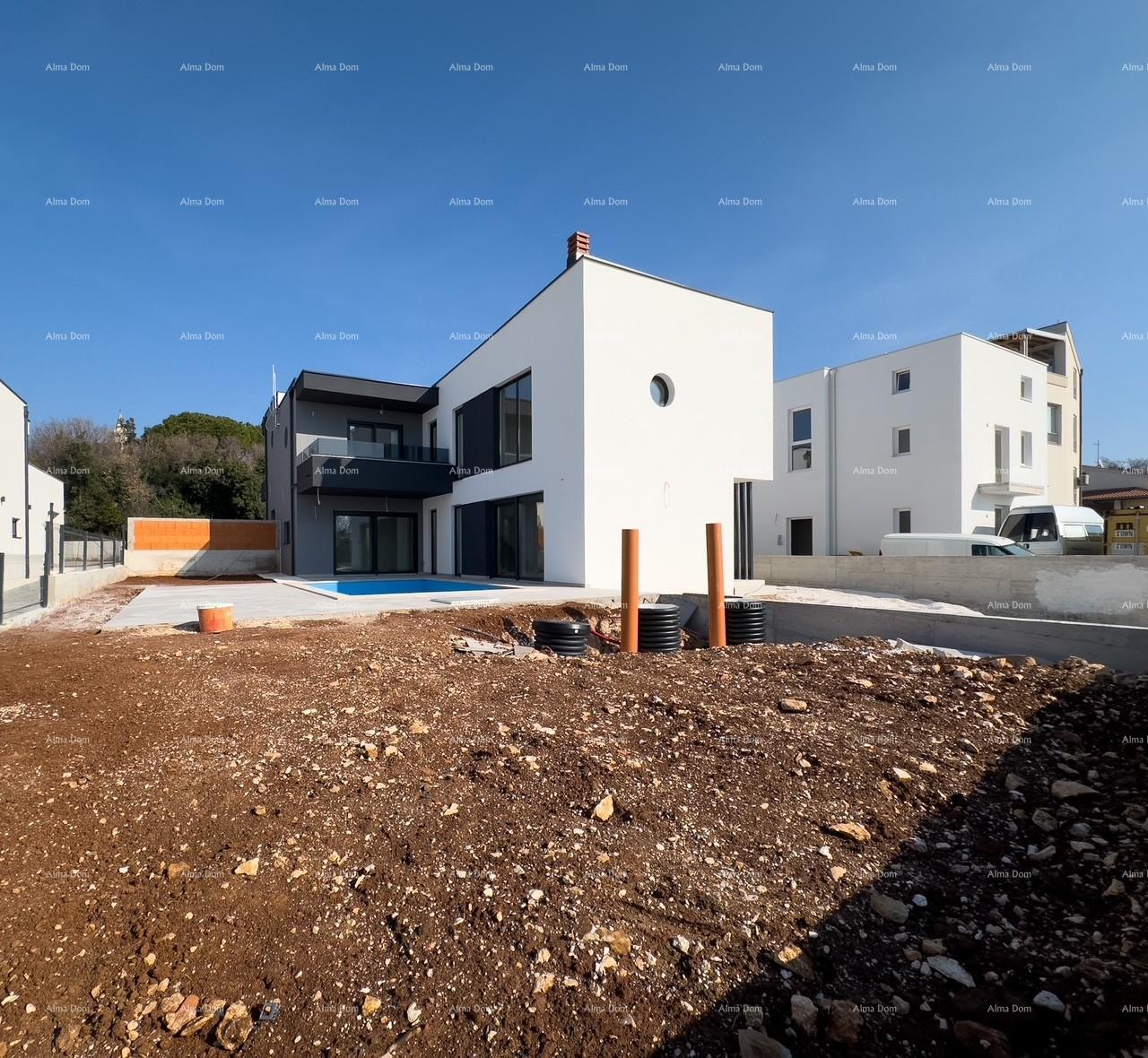 Opis: Prodaje se nova kuća sa bazenom od 155 m2. Kuća ima dnevni boravak, kuhinju, blagovaonicu, spavaću sobu i kupaonicu u prizemlju. Na katu se nalaze 2 spavaće sobe, kupaonica te spremište. Iz jedne od spavaćih soba izlazi se na prostranu terasu. Prizemlje vodi do bazena. Okućnica je cca 550 m2.