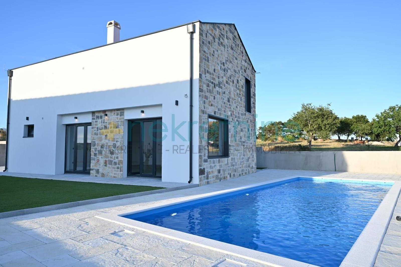 U ponudi je prekrasna i elegantna kuća, novogradnja s bazenom, smještena u mjestu Visočane, općina Poličnik.