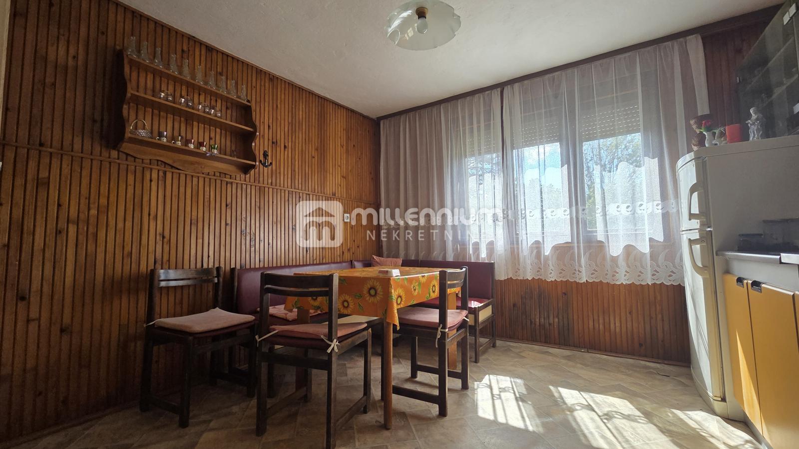 Opis: U mirnom dijelu Vrbovskog, daleko od gradske vreve, smještena je samostojeća kuća ukupne površine 200m², raspoređena na tri etaže: prizemlje, kat i visoko potkrovlje. Kuća je uvučena od glavne ceste, okružena zelenilom i ravnim terenom koji se prostire i iza kuće, pružajući osjećaj privatnosti i mira. U prizemlju se nalazi kuhinja s blagovaonicom, jedna soba, konoba, ostava, hodnik te unutarnje stepenište koje vodi na kat. Prvi kat sastoji se od dvije sobe, kuhinje, kupaonice, dodatne ostave te stepeništa koje vodi u visoko potkrovlje. Tavanski prostor je prostran, ali neuređen, pružajući mogućnost dodatnog uređenja prema vlastitim željama. Kuća je građena čvrsto, s betonskim međukatnim pločama i krovom pokrivenim crijepom koji je u dobrom stanju, suh i ne propušta. Uz kuću se nalazi i gospodarski objekt od 30m², zidan ciglom, koji može poslužiti kao spremište, radionica ili dodatni prostor za razne potrebe. Na okućnici od 1.400m2 se nalaze dva njegovana voćnjaka koji dodatno obogaćuju ovu nekretninu i čine je idealnom za obiteljski život, vikendicu ili seoski turizam....