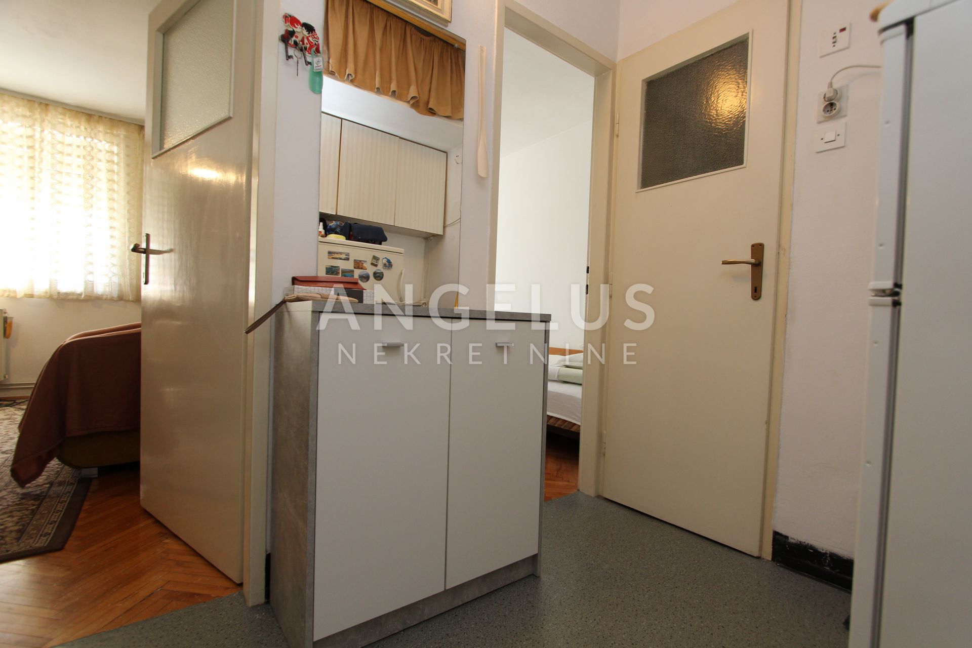 Namješteni stan površine 37 m2, nalazi se na 4. katu zgrade bez lifta. Sastoji se od ulaznog prostora, spavaće sobe, dnevne sobe povezane sa kuhinjom i kupaonice. Namješten je i klimatiziran, plinsko centralno grijanje. Idealno za studente.