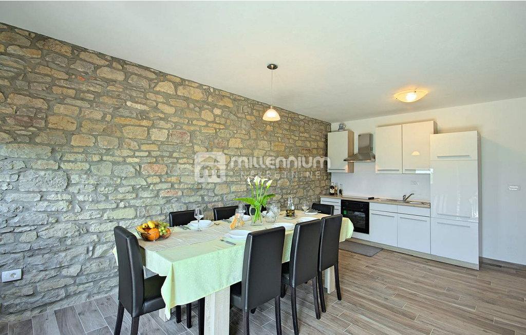 Kuća je temeljito renovirana 2017. godine, pri čemu su zadržani izvorni kameni elementi, a ujedno je unesen moderan stil i funkcionalnost. Na katu je 2-sobni stan s dnevnim boravkom i velikim balkonom s kojeg se pruža očaravajući panoramski pogled na zelene brežuljke, vinograde i maslinike, što ovu nekretninu čini idealnim mjestom za miran boravak ili turistički najam.