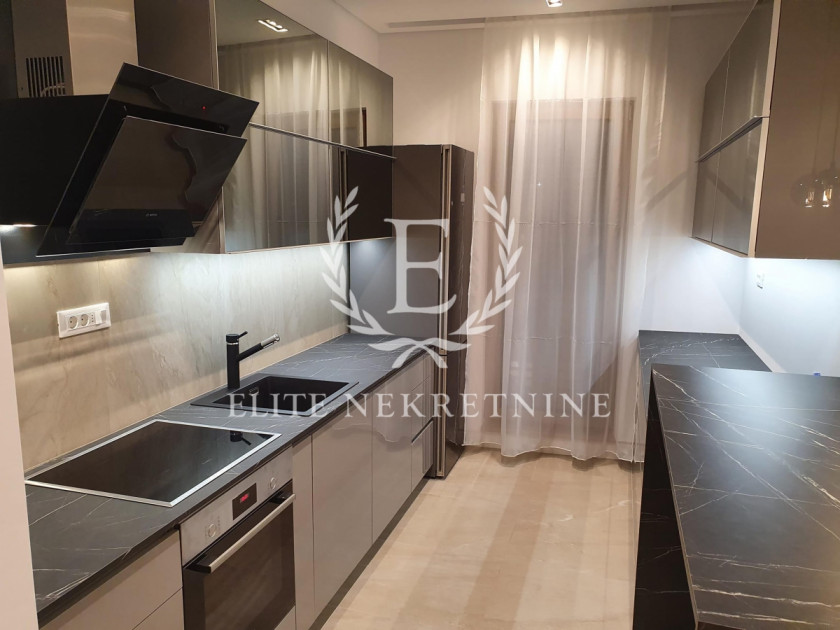 Stan je kompletno namešten i opremljen ugradnim plakarima, optičkim internetom, TV uređajem, kao i modernom kuhinjskom tehnikom (sudomašina, frižider, zamrzivač, rerna, šporet). U stanu se nalazi i mašina za veš, kao i klima uređaji.