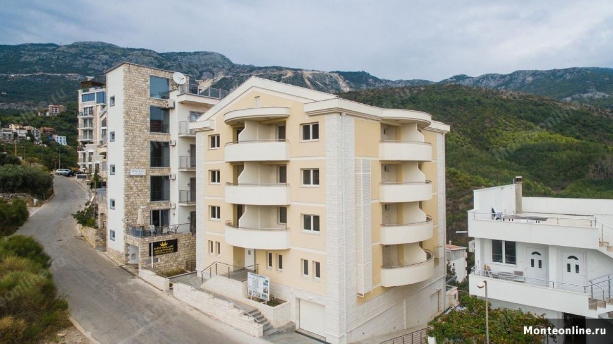 Opis: Stambeni objekat obuhvata 13 stanova (prizemlje + 3 sprata), podzemne garaže i rekreacioni deo sa bazenom. Svi apartmani sa 1 ili 2 spavaće sobe; sa pogledom na zelenilo ili more.