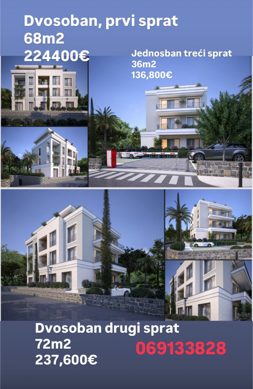 Opis: Prodajem jednosban i dva dvosobna stana u Tivtu na Dumidranu u novoj zgradi sa obezbedjenim parking mestom