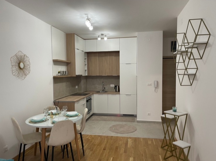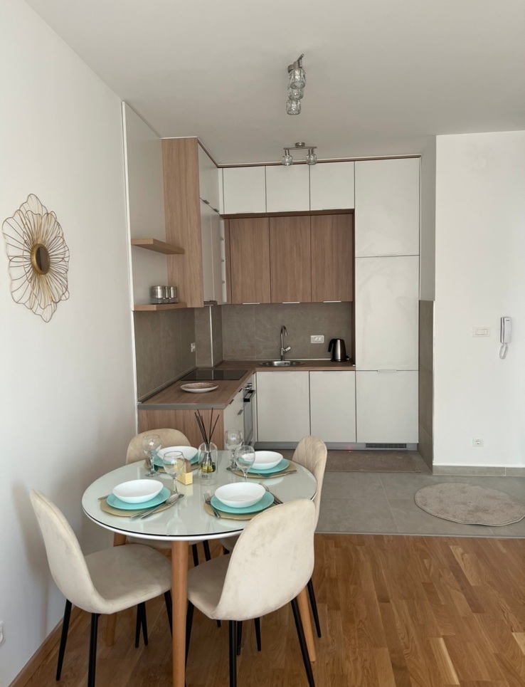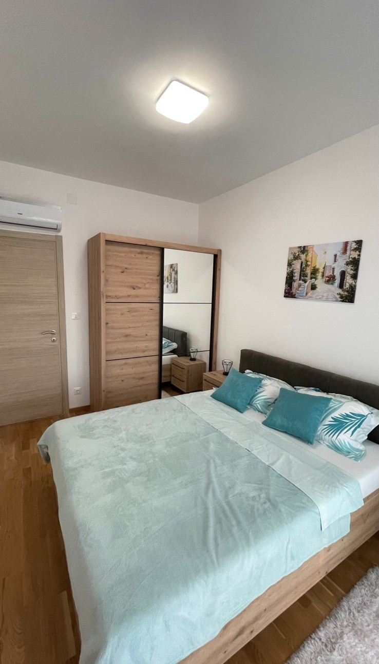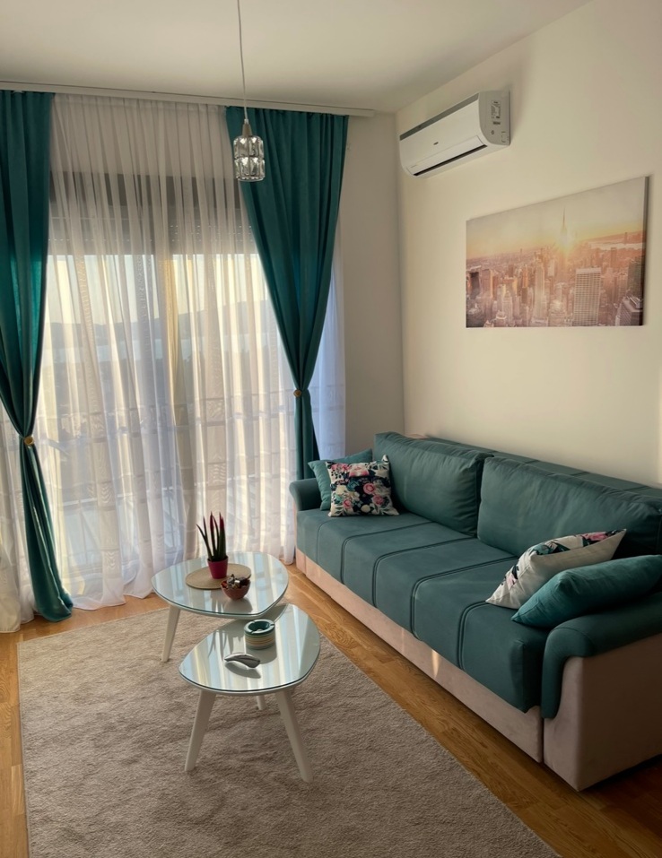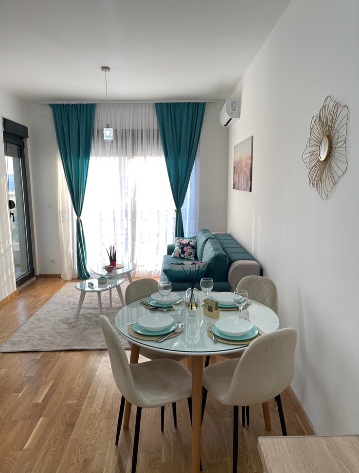Opis: DUGOROČNO RENTIRANJEModeran i nov jednosoban apartman sa prelijepim pogledom na more, nalazi se na prvom spratu stambene zgrade u naselju Mažina, u Tivtu, na oko 1km od marine Porto Montenegro.
