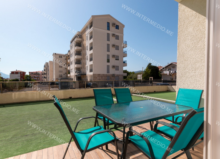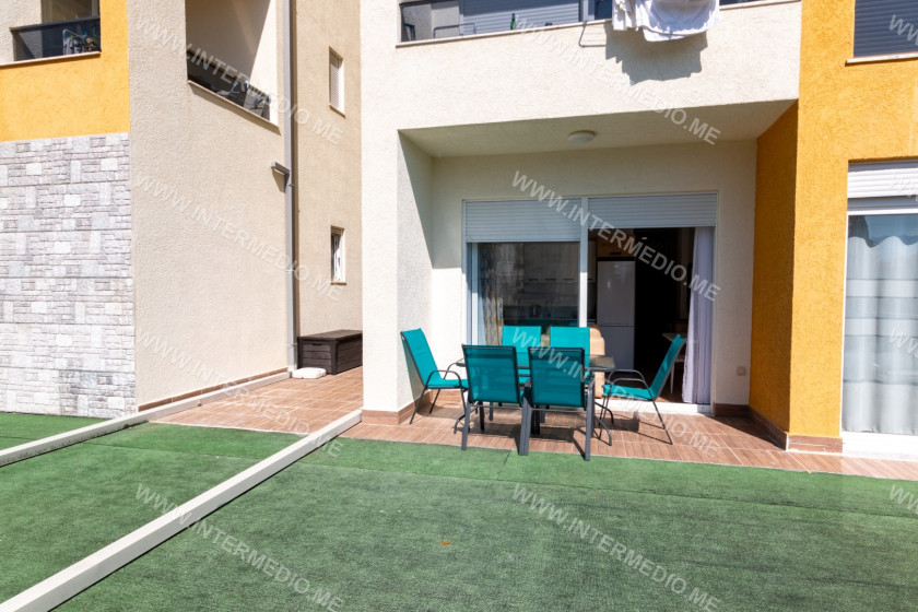 Stan je smješten u prizemlju zgrade sa izlazom na prostranu terasu za uživanje.