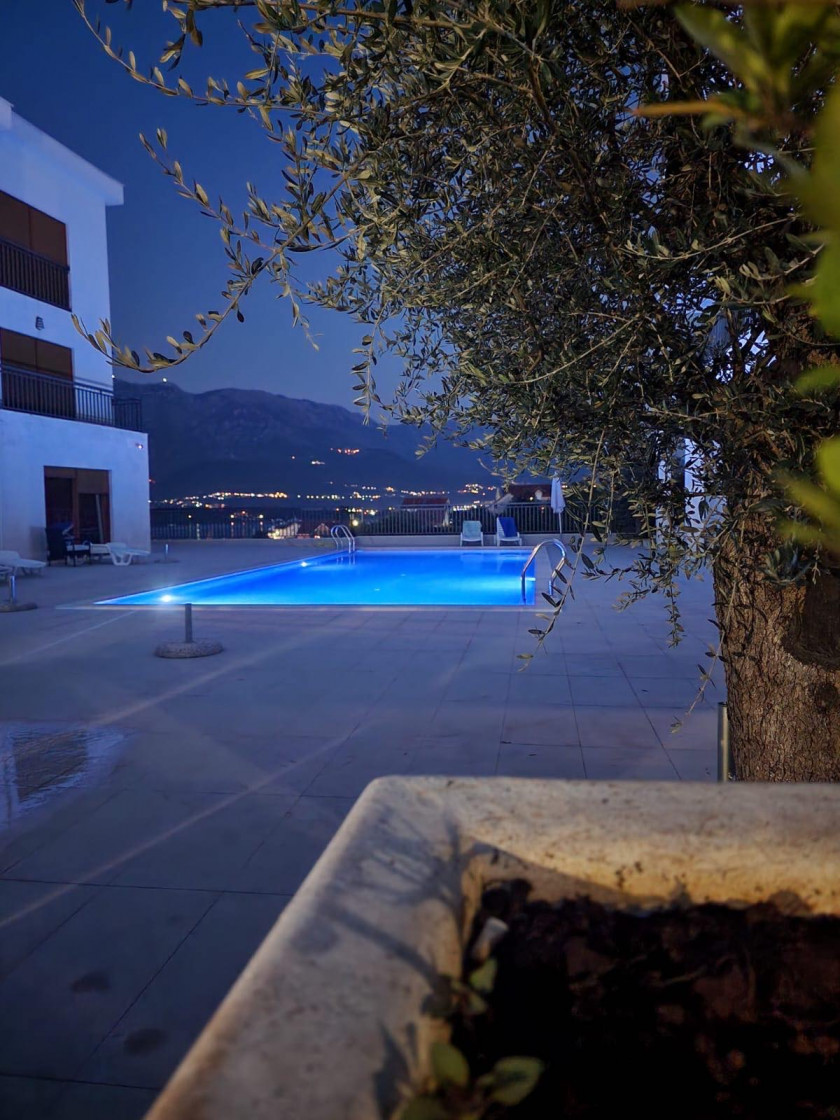 Apartman je smješten u zatvorenom kompleksu, okružen zelenilom i maslinama, te pruža privatnost, užitak i mir. U neposrednoj blizini se nalazi Nikki beach, zatim Luštica Bay, aerodrom Tivat, Porto Montenegro i centar grada, kao i mnoštvo prelijepih plaža.