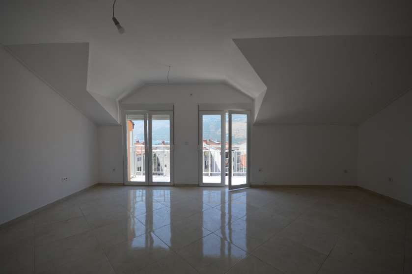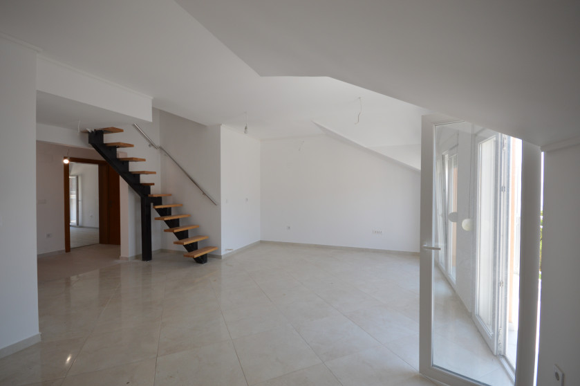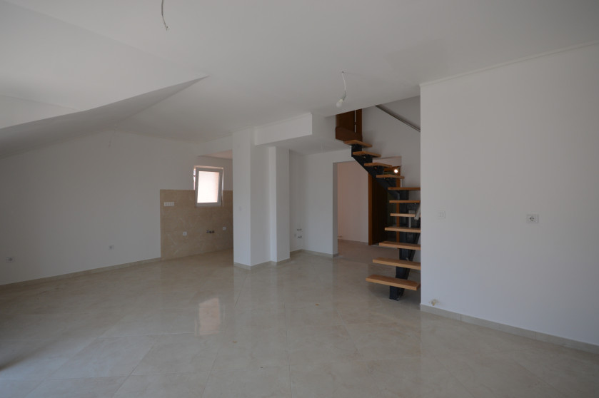 Stan nudi pogled na more i sastoji se od dnevnog boravka sa kuhinjom i trpezarijom, dve spavaće sobe, dva kupatila, ostave i dve terase. Potkrovlje se može pretvoriti u dodatnu sobu, čime se povećava funkcionalnost prostora. Ovo je udobna i dobro pozicionirana nekretnina idealna za porodični život ili kuću za odmor.