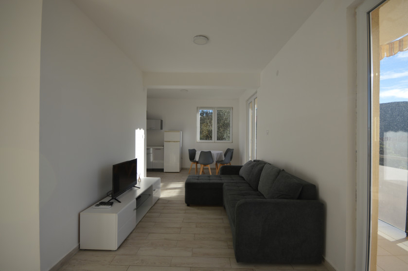 Stan je površine 52 m2 i sastoji se od hodnika, dnevnog boravka sa kuhinjom i trpezarijom, kupatila, jedne spavaće sobe i prostrane terase sa pogledom na more.