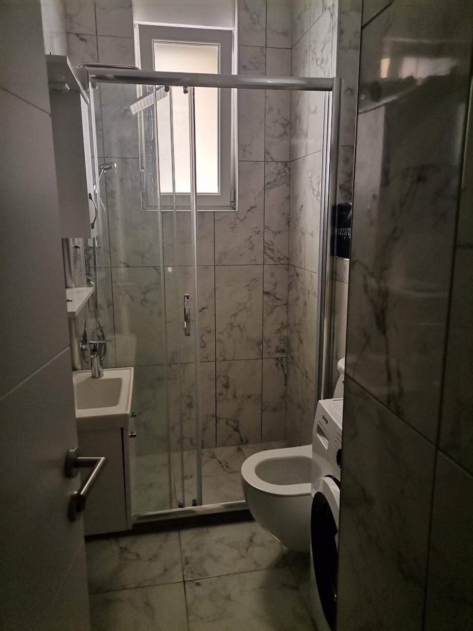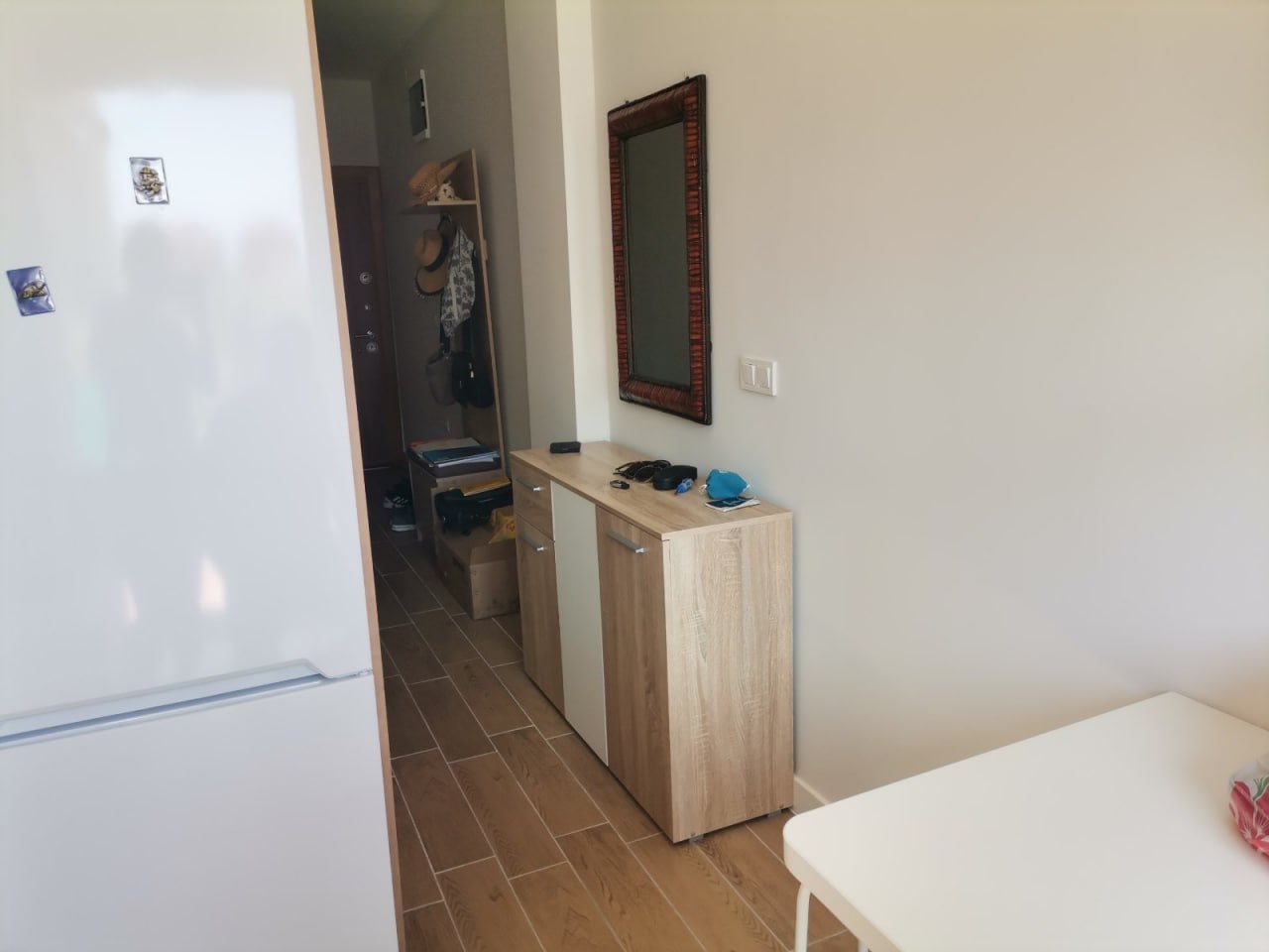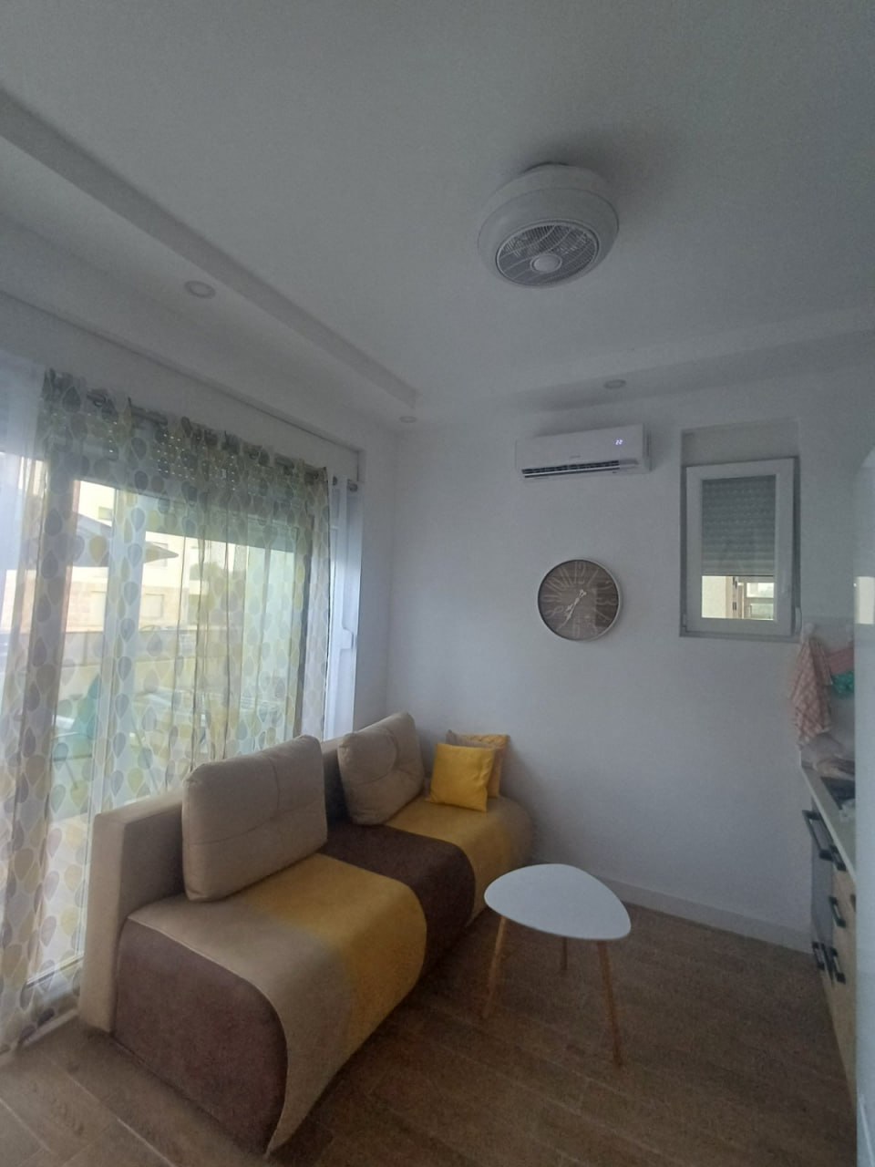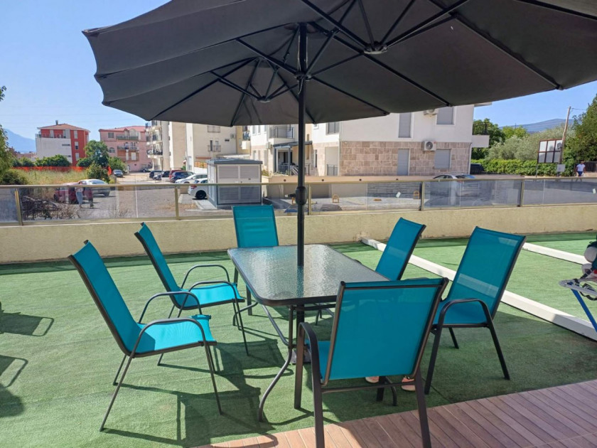 Stan od 31m2, plus prostrana terasa 4 x 5m, na visokom prizemlju u novoj zgradi sa liftom. U stanu: 1 spavaća soba, dnevna soba sa kuhinjom, hodnik, kupatilo, terasa. Namešten i sa potrebnom opremom. Zgrada ima sopstveni parking. Do mora 550m, blizu velikih marketa Voli, HDL