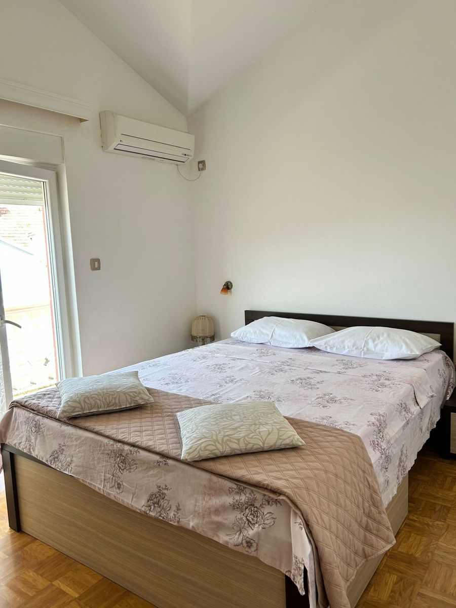 Opis: Izdaje se komforan dvosoban stan površine 120m², smješten na spratu porodične kuće u Donjoj Lastvi, svega 50 metara od mora. Stan ima poseban ulaz, što pruža dodatnu privatnost i osjećaj samostalnog boravka.