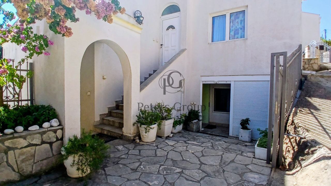 Kuća ima udoban asfaltni prilaz. Ulaz na plac kroz klizna vrata. Postoji garaža sa prilazom sa gornjeg nivoa i unutrašnjim ulazom iz hodnika gornjeg apartmana.