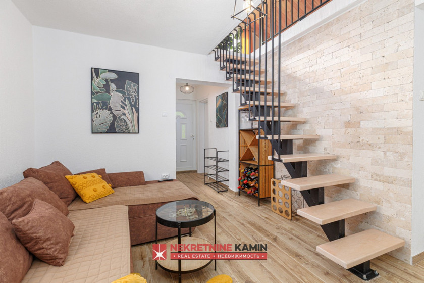 Na I etaži se nalazi dnevna soba sa kuhinjom, ostava, kupatilo i prostrana terasa.