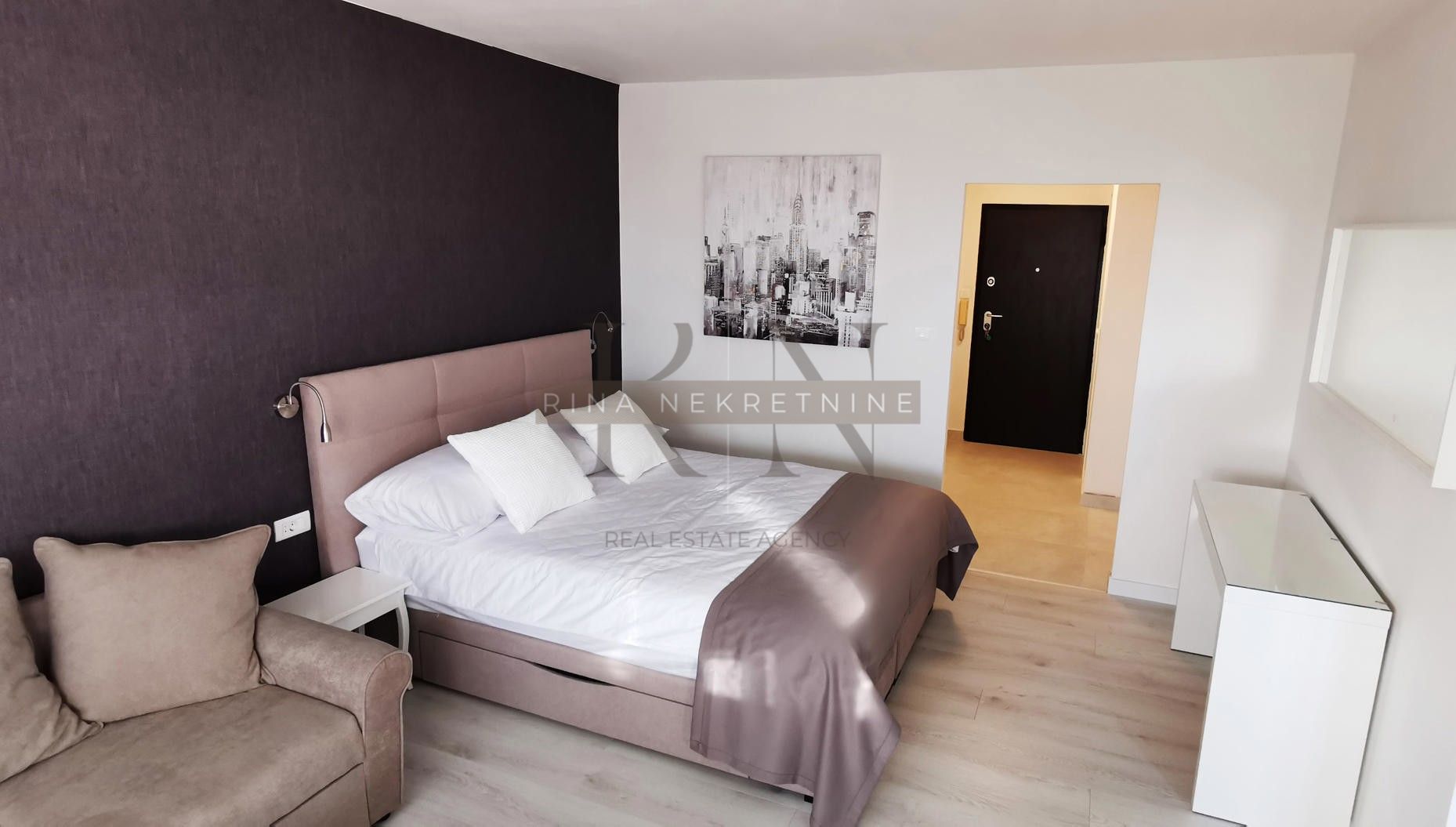 Sastoji se od: hodnika sa ugradbenim ormarom, kuhinje s blagovaonicom, dnevnog/spavaćeg prostora, kupaonice i zatvorene lođe