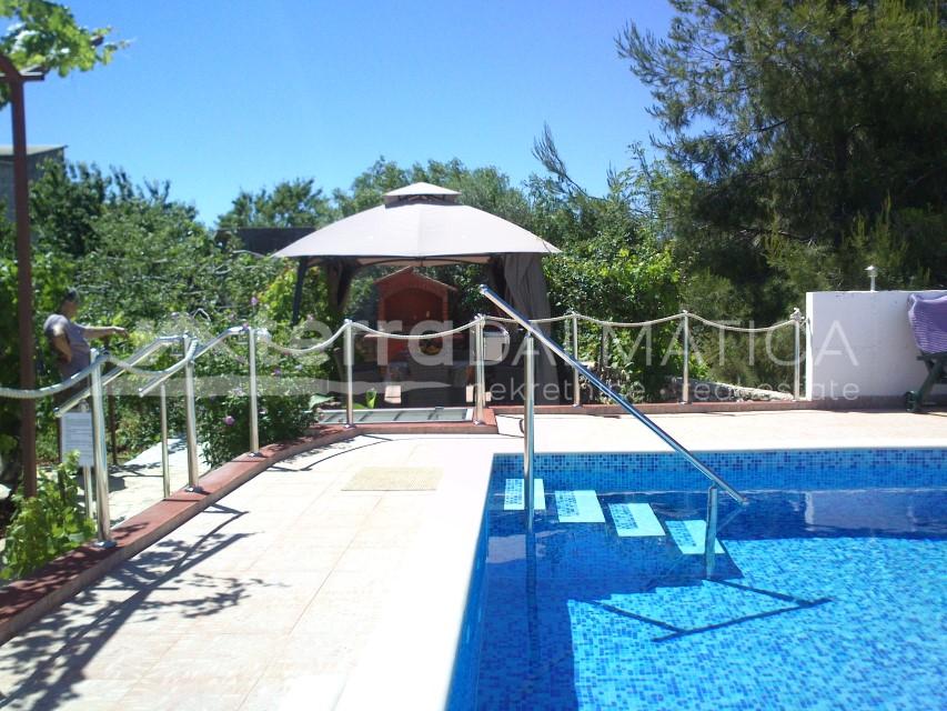 Opis: U Primoštenu Burnjem se prodaje kuća s bazenom i panoramskim pogledom na more. Nalazi se na mirnoj lokaciji, i svega je tri kilometra udaljena od Primoštena. Kuća ima tri etaže. U prizemlju se nalazi jednosoban stan s velikim dnevnim boravkom i kuhinjom. U prizemlju uz kuću se nalazi još jedan jednosoban apartman. Unutrašnje stubište vodi na prvi kat gdje su smješteni jednosoban apartman i studio apartman s terasama, dok se na drugom katu nalazi trosobni apartman s velikom terasom. Apartmani se iznajmljuju turistima. Sa svih terasa se pruža prekrasan pogled na Primošten i okolni arhipelag. Okućnica je velika i lijepo uređena s bazenom veličine 4mx8m i sunčalištem te ima dosta prirodnog hlada. Primošten je prekrasno dalmatinsko mjesto nadaleko poznato po svojim šljunčanim plažama. Jedno je od najslikovitijih malih mjesta na Jadranu, s mnoštvom karakterističnih uskih uličica u staroj jezgri.