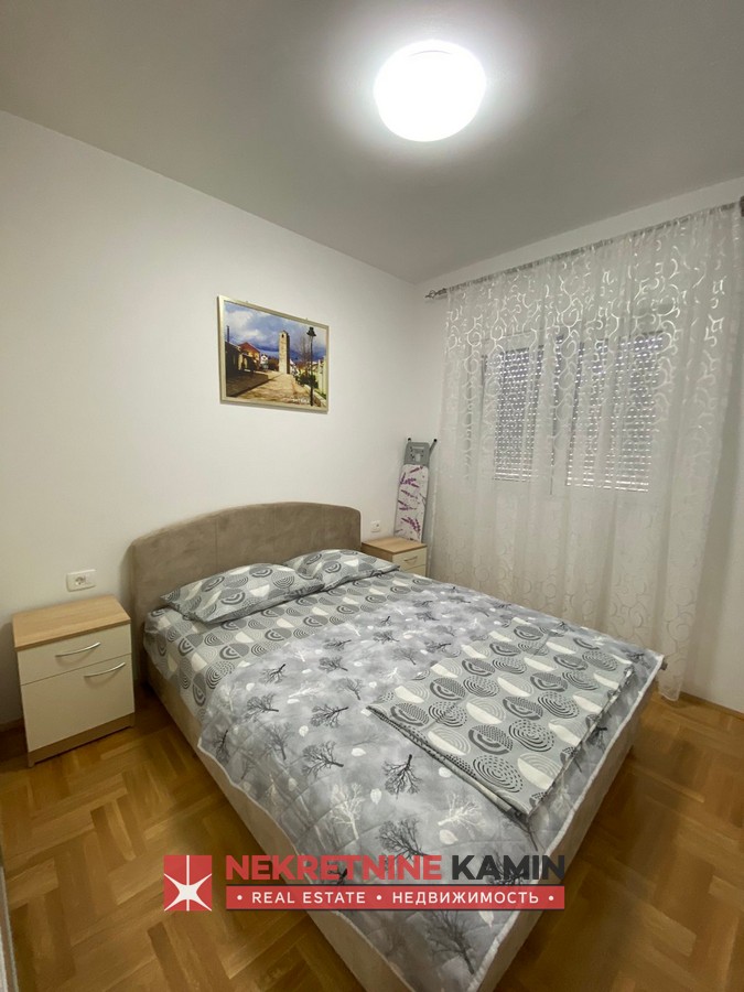Opremljen je kompletno namještajem i bijelom tehnikom i izdaje se u vidjenom stanju.