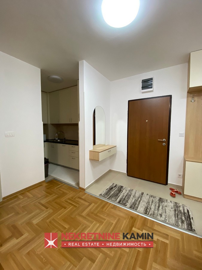 Rasporedjen je na predsoblje, dnevni boravak sa kuhinjom, spavaću sobu, kupatilo i terasu.