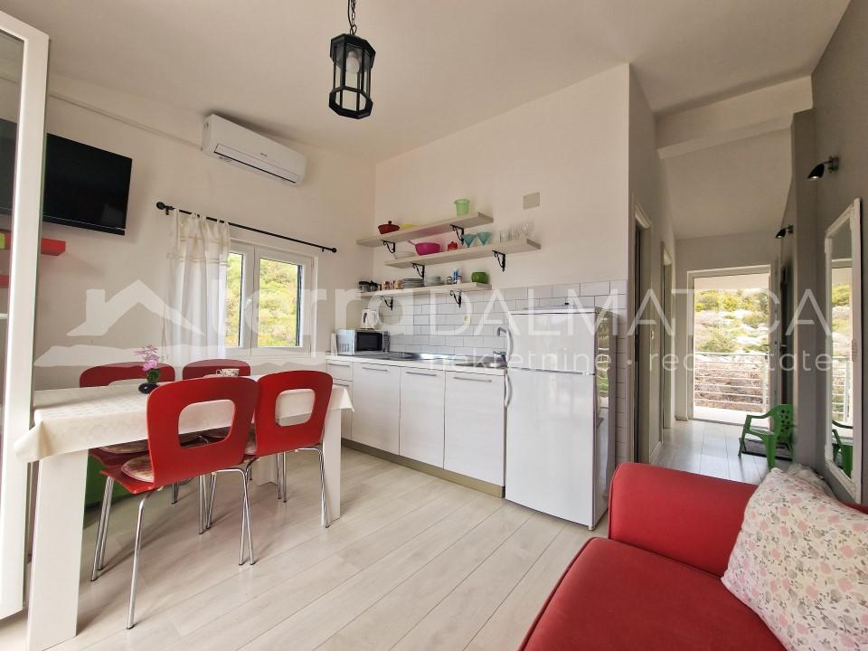 Opis: Na otoku Kapriju se prodaje kuća na tri etaže s predivnim pogledom na more. Nalazi se na udaljenosti manjoj od 100 metara od mora. Kuća ima ukupnu stambenu površinu od 180 m², a sagrađena je na zemljištu veličine 504 m². Sastoji se od tri etaže koju čine suteren, te prizemlje i kat do kojih se dolazi vanjskim stepenicama. Suteren se sastoji od dvije spavaće sobe, kupaonice, blagovaonice, kuhinje, dnevnog boravka i balkona. U prizemlju se nalaze od dvije spavaće sobe, kupaonica, kuhinja, dnevni boravak i blagovaonica te prostrana terasa veličine 24 m². Ovaj kat nije u potpunosti dovršen pa ga budući vlasnik može urediti prema vlastitim željama. Na prvom katu se nalaze dva moderno uređena apartmana, a jedan i drugi se sastoje od jedne spavaće sobe, kupaonice, kuhinje, blagovaonice, dnevnog boravaka i terase sa direktnim pogledom na more. Kuću okružuje velika okućnica sa raskošnim zelenilom koja pruža hladovinu tijekom vrućih ljetnih dana, manjim vrtom u kojem se mogu uzgajati sezonsko cvijeće, voće i povrće te zasađenim mediteranskim biljem što sve doprinosi šarmu i živopisnosti nekretnine pružajući dojam autentičnog stila života na otoku Kapriju....