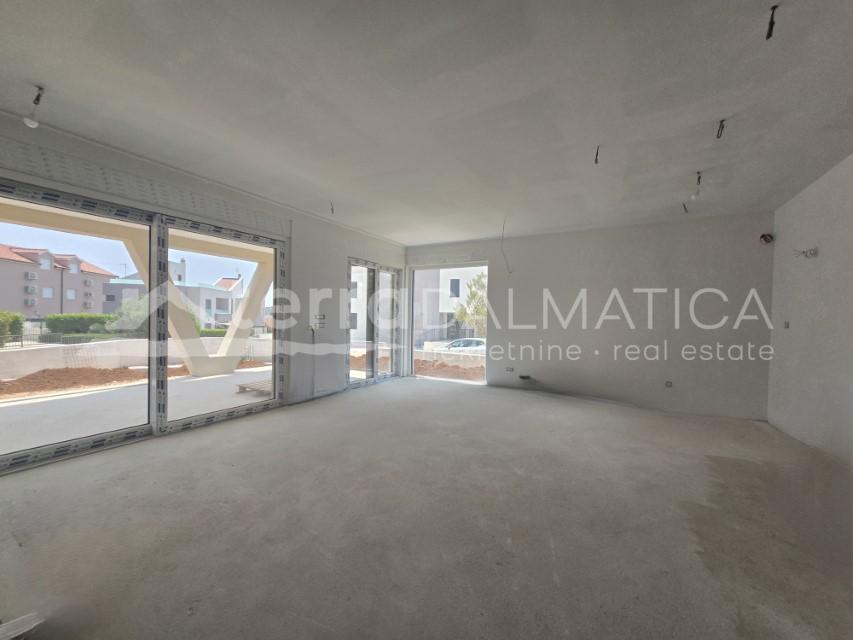 Opis: Smješten u šarmantnom gradiću Tribunju, ovaj atraktivni apartman nudi idealan spoj moderne arhitekture i udobnosti, savršen za obitelj ili kao investicija za turistički najam. Nalazi se u prizemlju zgrade koja je u izgradnji, a planirani završetak radova je krajem 2025. godine. Zgrada sadrži ukupno šest stambenih jedinica, čime se osigurava intimnost i miran ambijent. S ukupnom površinom od 116 m2, apartman se sastoji od tri prostrane spavaće sobe, dvije luksuzne kupaonice, od kojih je jedna en-suite uz glavnu spavaću sobu, te dodatnog WC-a s praonicom rublja. Dnevni boravak, blagovaonica i kuhinja oblikovani su u otvorenom konceptu, s podnim grijanjem koje pruža dodatnu udobnost tijekom hladnijih mjeseci. Moderni materijali i visokokvalitetne završne obrade vidljive su u cijelom apartmanu. Troslojna stakla, električni podizači roleta i komarnici osiguravaju optimalnu izolaciju i zaštitu. Klima uređaji instalirani su u dnevnom boravku i svim spavaćim sobama, omogućujući ugodnu temperaturu tijekom cijele godine. Jedna od posebnosti ovog apartmana je prekrasan vrt, savršen za opuštanje ili druženje na svježem zraku....