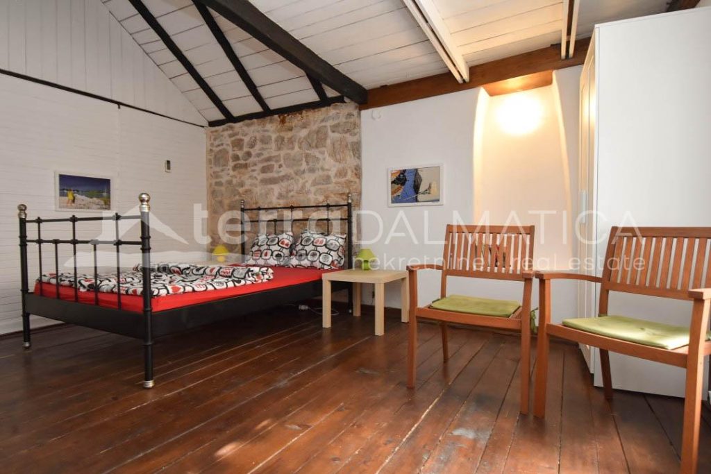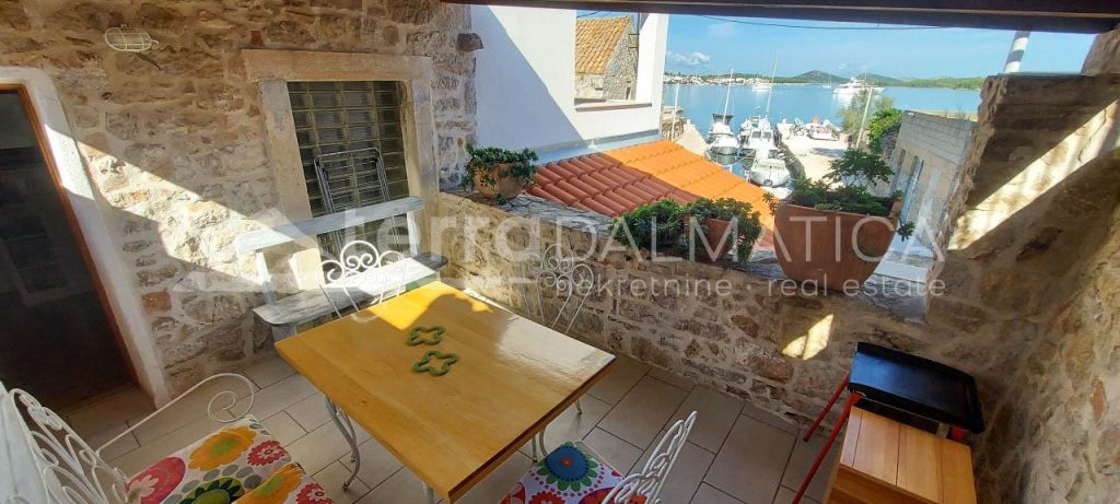 Opis: Na otoku Murteru prodaje se simpatična kamena kuća u blizini mora. Smještena svega 15-ak metara od mora tipičan je primjer tradicionalne dalmatinske kuće, savršene za boravak kako u ljetnim mjesecima, tako i u ostatku godine. Centar mjesta s restoranima i trgovinama je udaljen svega par minuta hoda. Kuća se prostire na tri etaže. U prizemlju se nalaze dnevni boravak, blagovaonica i kupaonica. Drvene stepenice vode na prvi kat na kojem je smještena kuhinja s izlazom na prekrasno uređenu natkrivenu terasu s pogledom na more. Na prvom katu se nalazi i jedna spavaća soba, dok je druga smještena na drugom katu. Kuća se prodaje s namještajem, i odmah je useljiva. Dodatna povlastica koja dolazi uz kuću je manji brod mogućnost veza u lučici ispred kuće. Otok Murter najveći je i najnapučeniji otok šibenskog arhipelaga odvojen od kopna uskim Murterskim kanalom, preko kojega je u mjestu Tisno izgrađen pokretni most dužine 12 metara. Ovaj prekrasni otok ima četiri naselja, Murter, Betinu, Jezera i Tisno. Mjesto Murter, koje se nalazi u samom središtu otoka najveće je četiri naselja....