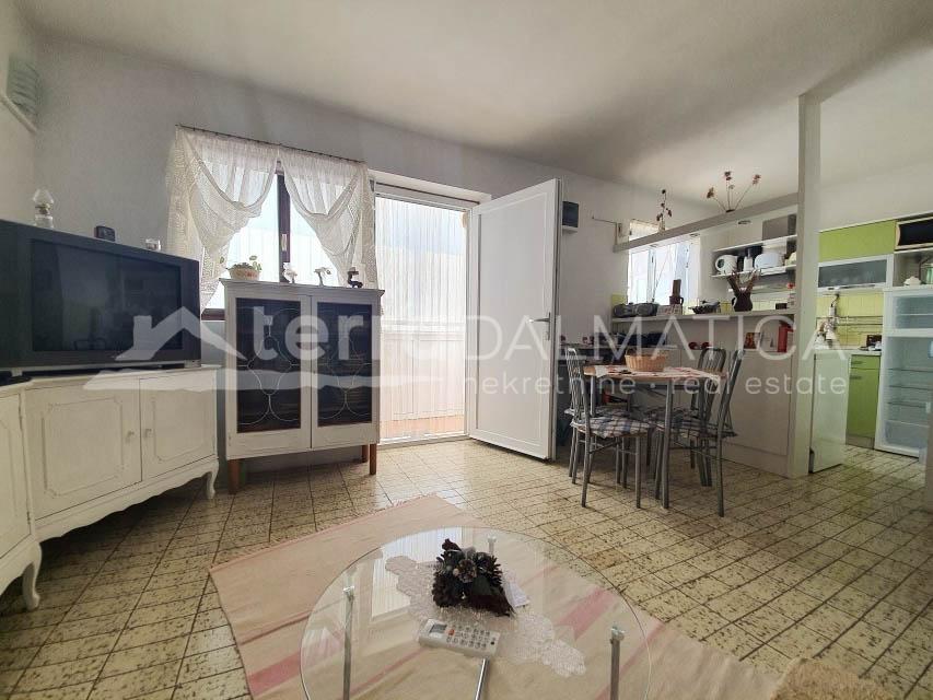 Opis: Prodajemo kuću u nizu koja se sastoji od dva stana i vrta. Smještena je u samom centru mjesta. Kuća se proteže kroz dvije etaže i ima ukupnu stambenu površinu od 158 m2. Stan na katu se koristi za stanovanje, a stan u prizemlju zahtjeva potpunu adaptaciju. Ova nekretnina može se koristiti u stambene, ali isto tako i poslovne svrhe. Smještena je na odličnoj lokaciji u samom centru šarmantnog mjesta. U neposrednoj blizini se nalaze restorani, caffe barovi, trgovine, šetnice, biciklističke staze, javni parking te razni drugi sadržaji. Radi se o nekretnini s puno potencijala i mogućnosti s obzirom na veličinu i zanimljivu lokaciju, te uz adaptaciju može biti idealna investicija u turizam. Stan na katu sastoji se od ulaznog prostora, dvije spavaće sobe, kupaonice, dnevnog boravka i kuhinje s blagovaonom. U prizemlju zgrade vlasnici su napravili manji stambeni prostor- garsonijeru. Stan u prizemlju sastoji se od dvije spavaće sobe, kuhinje s blagovaonicom, dnevnog boravka, hodnika, kupaonice te balkona. Tisno se nalazi dijelom na kopnu, a dijelom na otoku Murteru, a ime je dobilo prema tjesnacu između kopna i otoka....