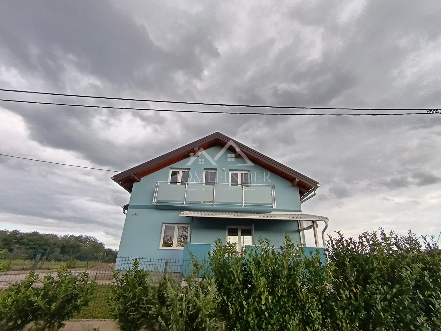 Kuća je građena kvalitetno i promišljeno, s naglaskom na udobnost i energetsku učinkovitost – ugrađena je termoizolacijska fasada debljine 10 cm (stiropor), a PVC stolarija dodatno osigurava toplinu zimi i ugodnu temperaturu ljeti. U dnevnom prostoru postoji i mogućnost ugradnje kamina ili peći, što dodatno doprinosi toploj, domaćoj atmosferi.