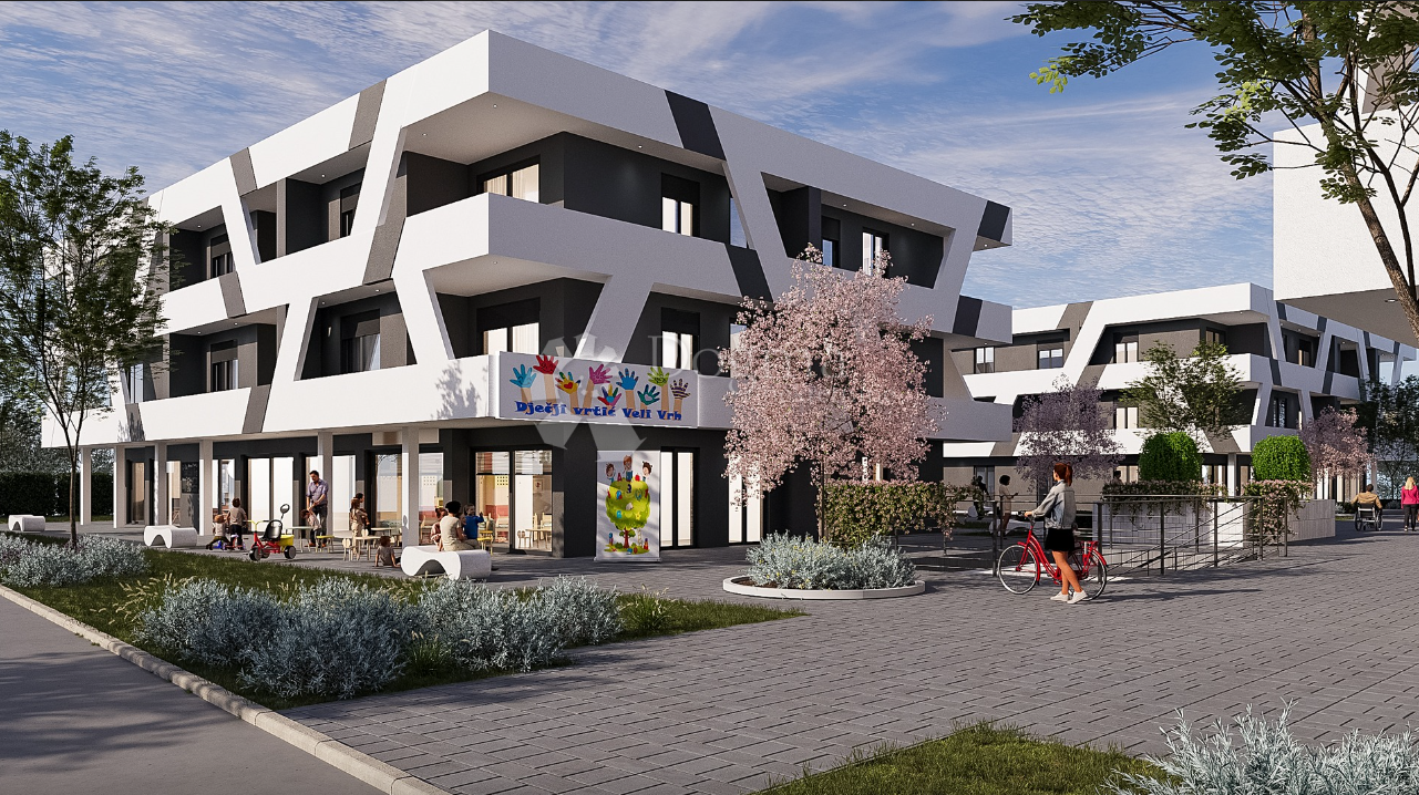 U prizemljima zgrada 1, 2 i 3 planiraju se izgraditi poslovni prostori; dječji vrtić od 150 m2, ljekarna, trgovine i druge uslužne djelatnosti koji će cijelom stambenom kompleksu pružiti novu dimenziju kvalitete života sa dostupnošću usluga i proizvoda za dnevne potrebe budućih stanara na jednom mjestu....