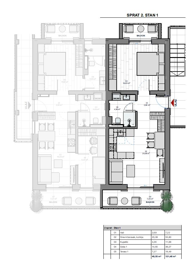 *Stanovi u prizemlju i penthouse prodaju se s garažnim mjestima. 1. i 2. spratova – s otvorenim parkirnim mjestom.