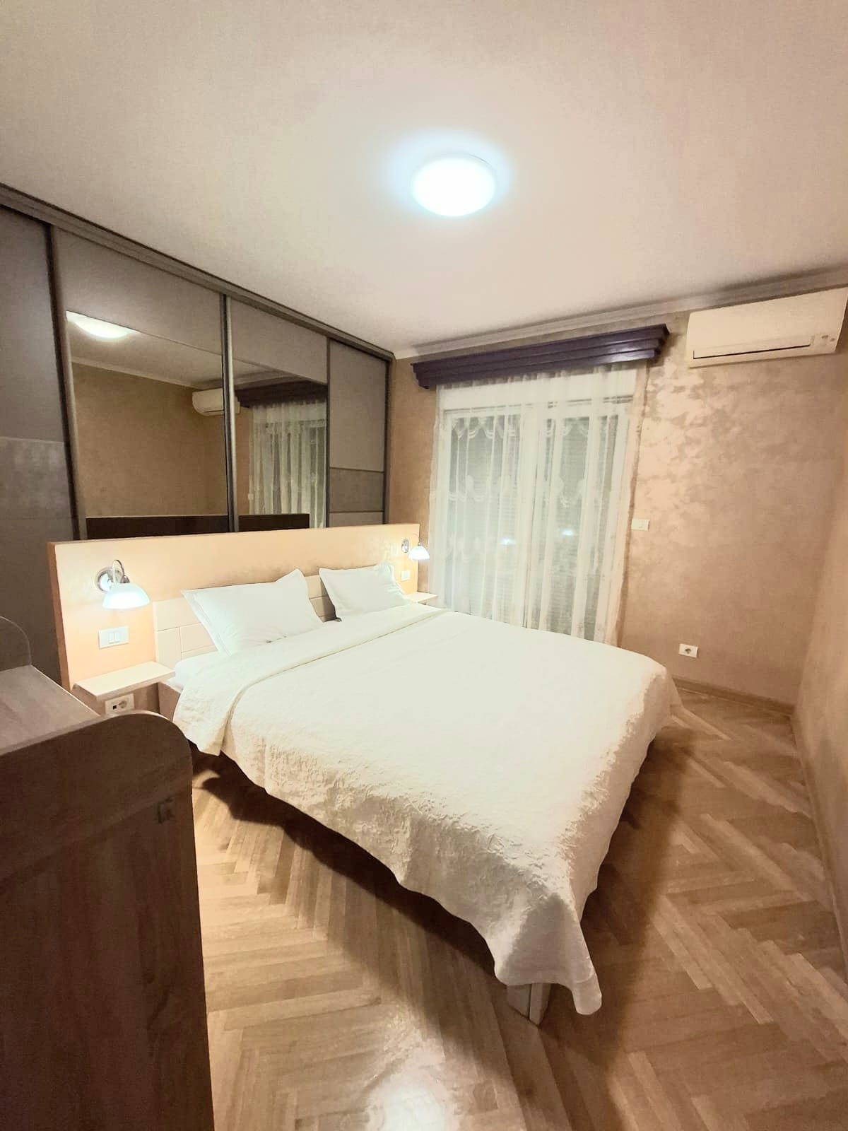 Heating in the apartment in provided by the highest quality DAIKIN multisplit inverter system in 3 rooms ( living room and 2 bedrooms) and heating floor in kitchen and bathroom.