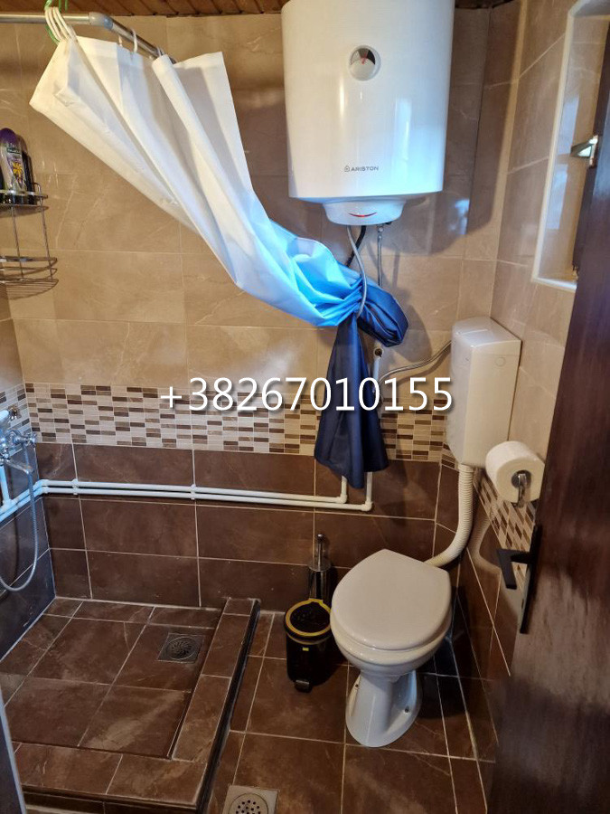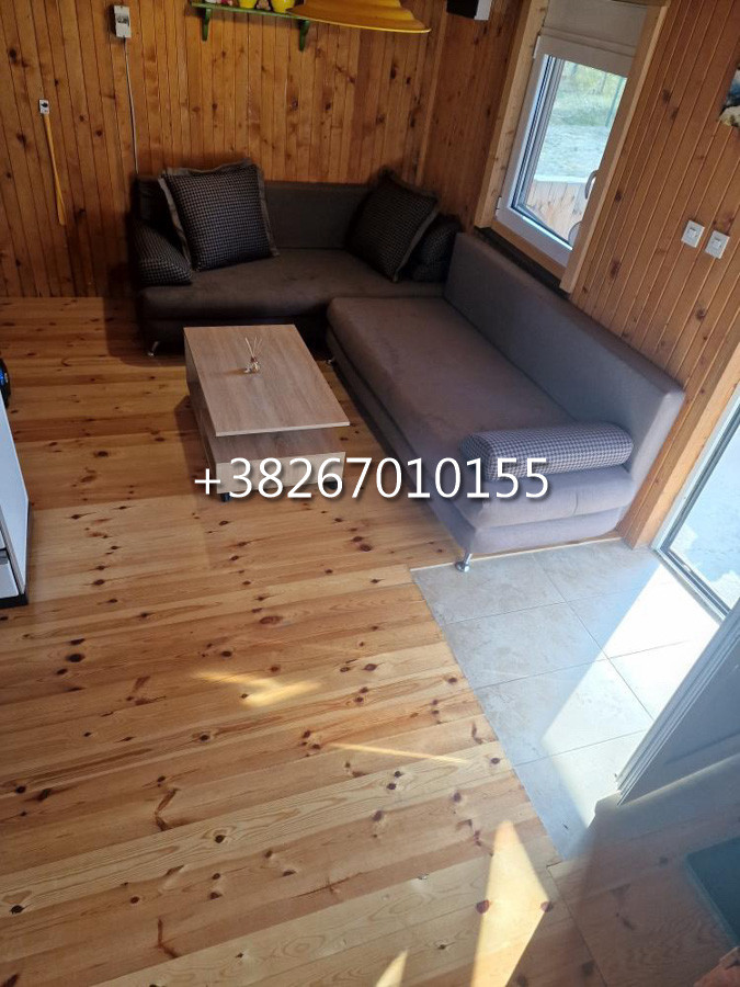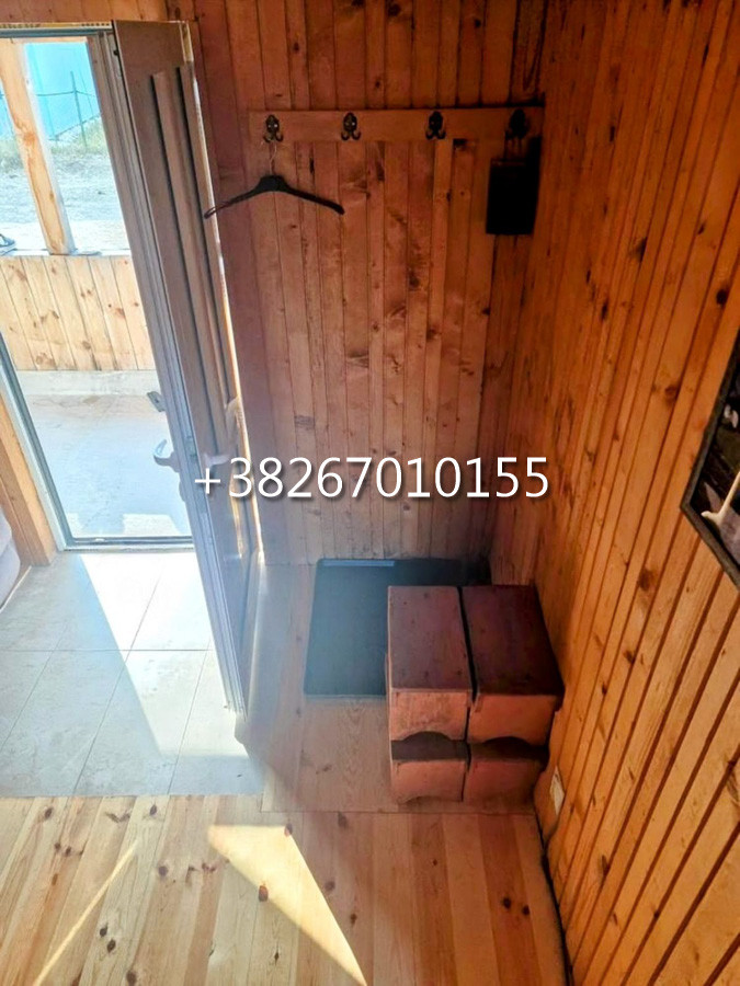 Kuća je izgrađena od bloka, pokrivena metalom, unutrašnja dekoracija je od drveta.