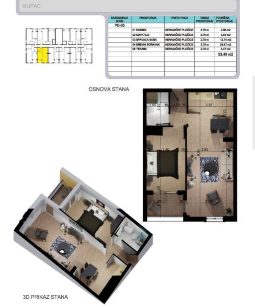 JEDNOSOBNI 51,22 m2 cij.2.150e/m2; 2.200e/m2; 2.250e/m2; 2.300e/m2