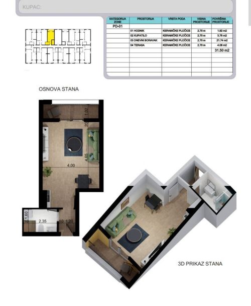 GARSONJERE :31,50M2 CIJENA 2.150e/m2; 2.200e/m2; 2.250e/m2; 2.300em2