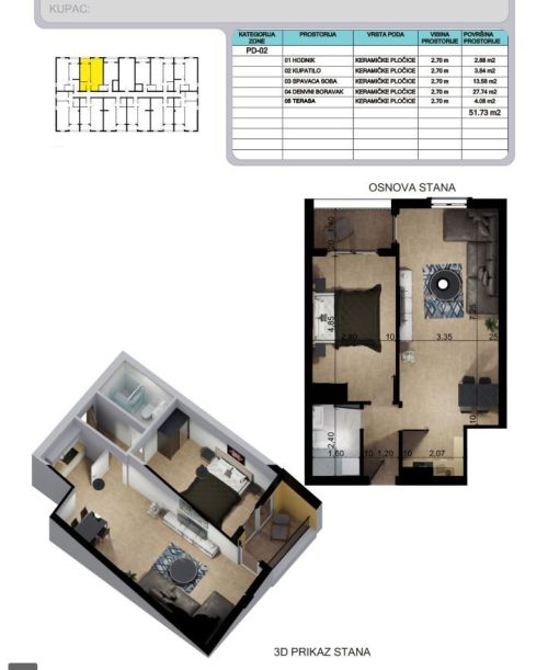 JEDNOSOBNI ; 51,73m2 cij.2.150e/m2; 2.200e/m2; 2.250e/m2;2.300e/m2