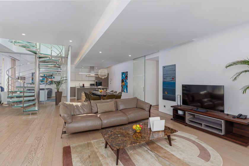 Opis: Na prestižnoj lokaciji u okviru luksuznog kompleksa Dukley Gardens nudi se prostrani stan površine 509 m², smešten na četvrtom spratu, sa direktnim pogledom na more i Seaside liniju.
