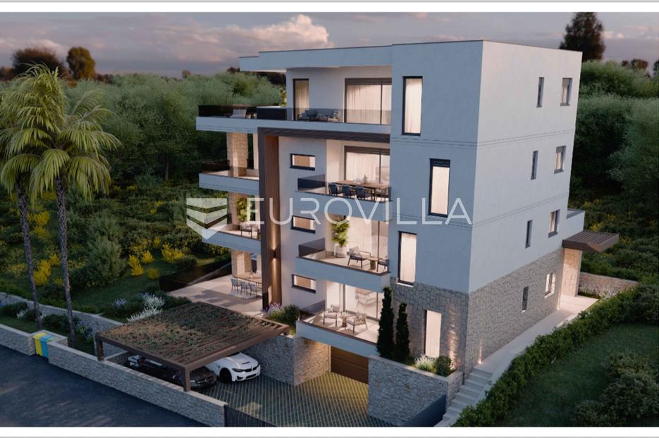 Opis: U Primoštenu na povišenoj poziciji, gradi se stambeni objekt južne orijentacije na pješačkoj udaljenosti od plaže od 1400 m. Objekt se sastoji od ukupno 7 luksuznih stambenih jedinica. Zahvaljujući izoliranoj i povišenoj poziciji, lokacija objekta pruža izuzetan mir i predivan pogled.Stan S3 na prvom katu jugozapadne orijentacije, ukupne neto korisne površine 73,44 m2 sastoji se od ulaznog prostora, prostranog dnevnog prostora (dnevni boravak, kuhinja I blagovaonica), dvije spavaće sobe površine 7 m2 odnosno 12 m2, kupaonice i terase površine 14 m2. Površina zatvorenog prostora stana iznosi 56,6 m2.Stanu još dodatno pripada parking mjesto površine 19,7 m2.U izgradnji objekta se koriste vrhunski materijali i primjenjuju visoki standardi gradnje. Objekt se gradi armiranobetonskom konstrukcijom, s fasadom od kamene vune debljine 10 cm. Vanjska aluminijska stolarija opremljena je troslojnim staklom, električnim roletama i komarnicima na sobnim prozorima.Stanovi imaju protuprovalna vrata, klima uređaj u svakoj prostoriji, podno grijanje, dok su podne obloge keramika i parket vrhunske kvalitete, dostupne u više varijanti prema izboru kupca....
