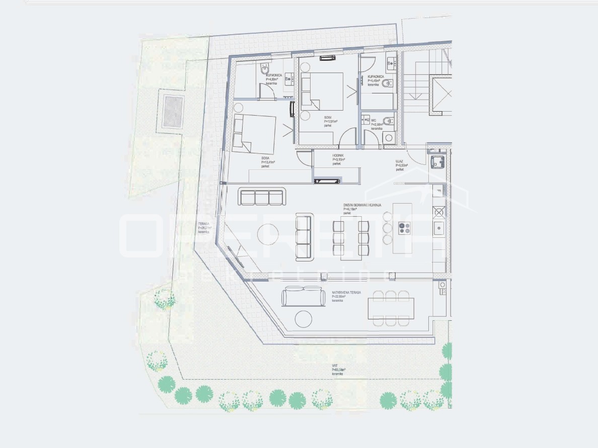 Opis: U mirnoj rezidencijalnoj zoni Opatije, u visoko kvalitetnoj novogradnji koja se nalazi u završnoj fazi izgradnje, na prodaju je prostran stan u prizemlju, koji objedinjuje suvremeni dizajn, funkcionalan raspored i najnovije tehničke standarde.Stan se sastoji od ulaznog hodnika, gostinjskog WC-a, dvije spavaće sobe, svaka s vlastitom kupaonicom – dnevnog boravka s kuhinjom i blagovaonicom otvorenog tipa, natkrivene i nenatkrivene terase, te pripadajućeg vrta koji dodatno obogaćuje životni prostor i pruža osjećaj privatnosti.Velike staklene stijene omogućuju obilje prirodne svjetlosti i skladan prijelaz između unutarnjeg i vanjskog prostora, čime se stvara ugodan i prozračan ambijent.Stan je opremljen vrhunskom opremom: podnim grijanjem u svim prostorijama, sustavom rekuperacije zraka s filtracijom, višeslojnim hrastovim parketom, električnim aluminijskim žaluzinama te naprednim pametnim sustavom za upravljanje rasvjetom, grijanjem i sigurnosnim funkcijama.Vlasniku stana pripadaju tri garažna parkirna mjesta u podzemnoj garaži te privatno spremište....
