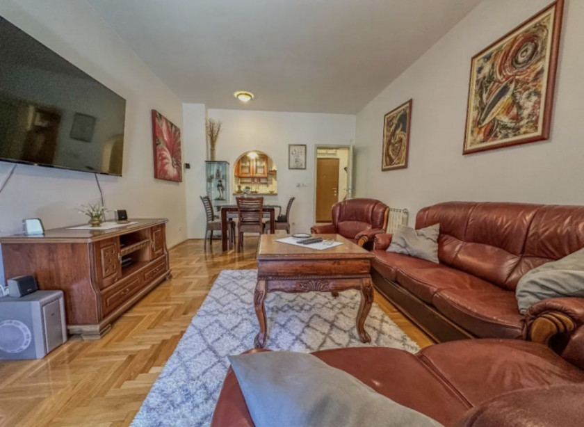 Opis: Izdaje se dvosoban namjesten stan u Profesorskoj zgradi Preko Morace na bulevaru Dzordza Vasingtona.