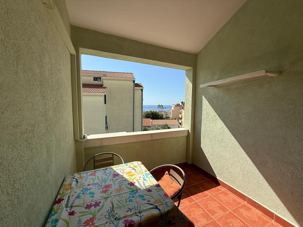 Opis: Izdaje se izuzetno udoban studio sa fantastičnim pogledom. Nalazi se u mirnom delu Petrovca na svega 250 metara od šetališta.