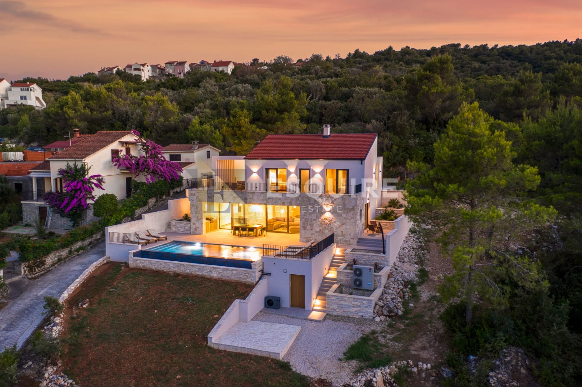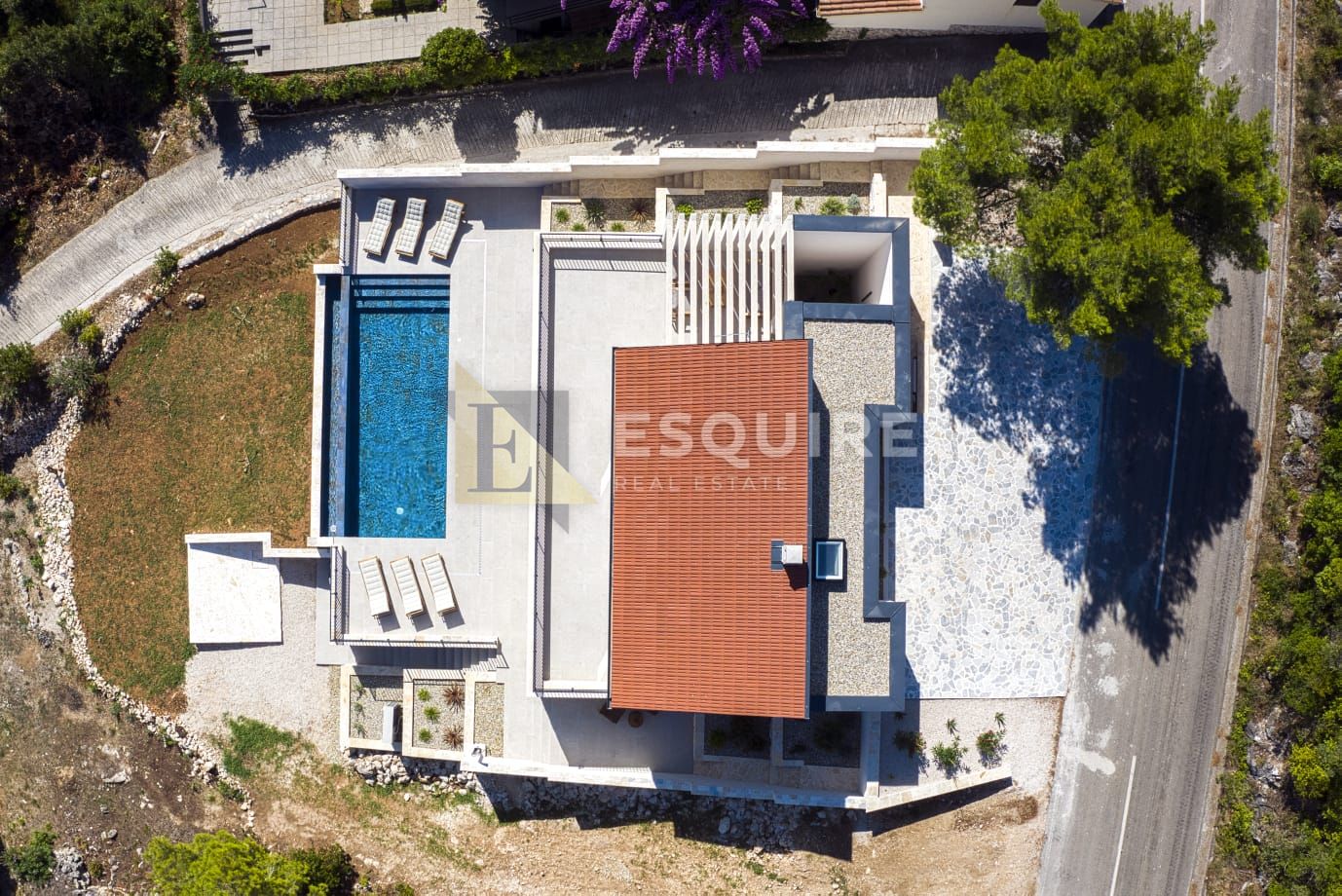 - dvije terase (donju i gornju), sunčalište, balkon te privatni parking od 90 m²